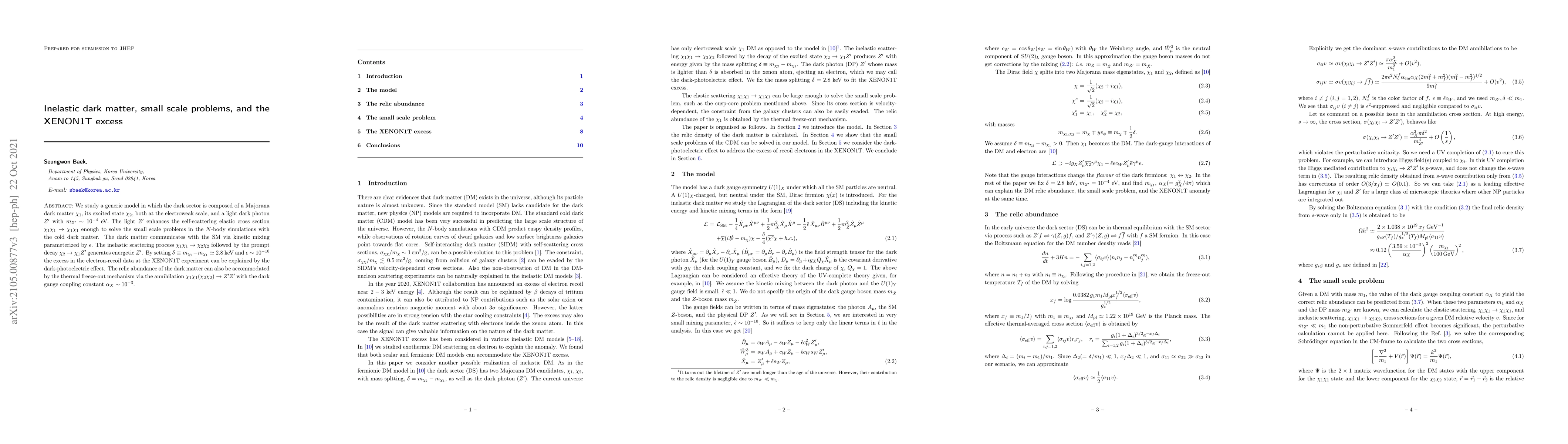 This paper proposes a model with inelastic dark matter and a light dark photon to address small-scale problems in cold dark matter simulations and to explain the XENON1T excess via the dark-photoelectric effect. The model includes a Majorana dark matter particle and its excited state, with kinetic mixing to the Standard Model, enabling the necessary interactions.