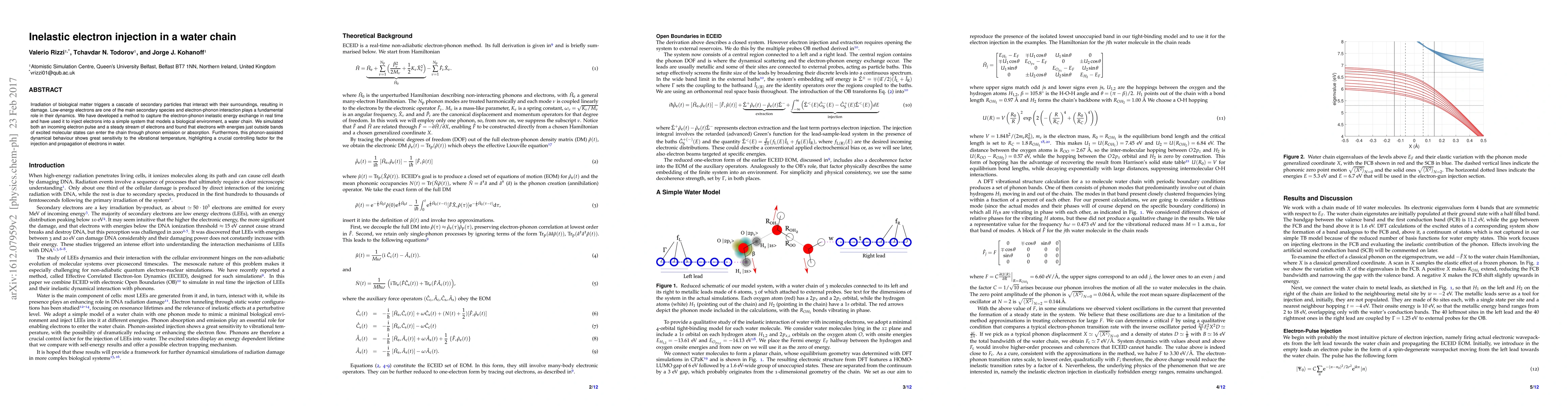 Researchers developed a method to capture electron-phonon interactions in real-time and injected electrons into a water chain model, finding that phonons play a crucial role in controlling the injection and propagation of electrons.