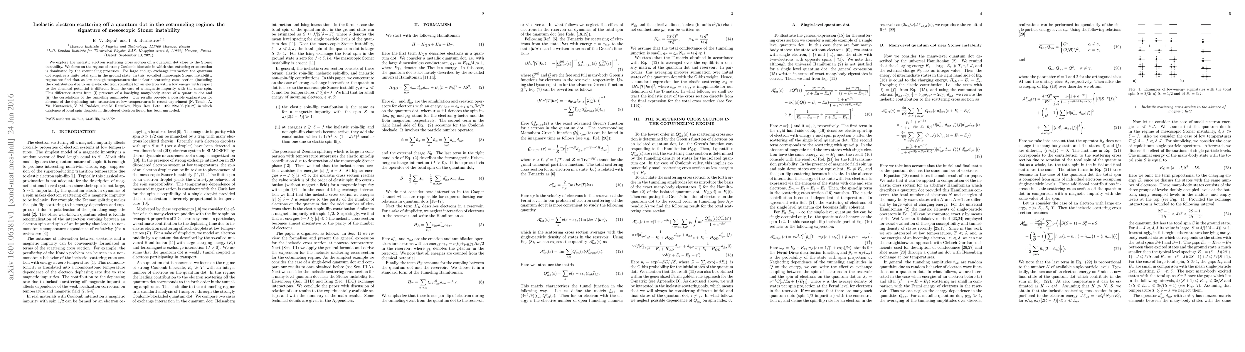We explore the inelastic electron scattering cross section off a quantum dot close to the Stoner instability. We focus on the regime of strong Coulomb blockade in which the scattering cross section is dominated by the cotunneling processes. For large enough exchange interaction the quantum dot acquires a finite total spin in the ground state. In this, so-called mesoscopic Stoner instability, regime we find that at low enough temperatures the inelastic scattering cross section (including the contribution due to an elastic electron spin-flip) for an electron with a low energy with respect to the chemical potential is different from the case of a magnetic impurity with the same spin. This difference stems from (i) presence of a low-lying many-body states of a quantum dot and (ii) the correlations of the tunneling amplitudes. Our results provide a possible explanation for absence of the dephasing rate saturation at low temperatures in recent experiment [N. Teneh, A. Yu. Kuntsevich, V. M. Pudalov, and M. Reznikov, Phys. Rev. Lett. 109, 226403 (2012)] in which existence of local spin droplets in disordered electron liquid has been unraveled.