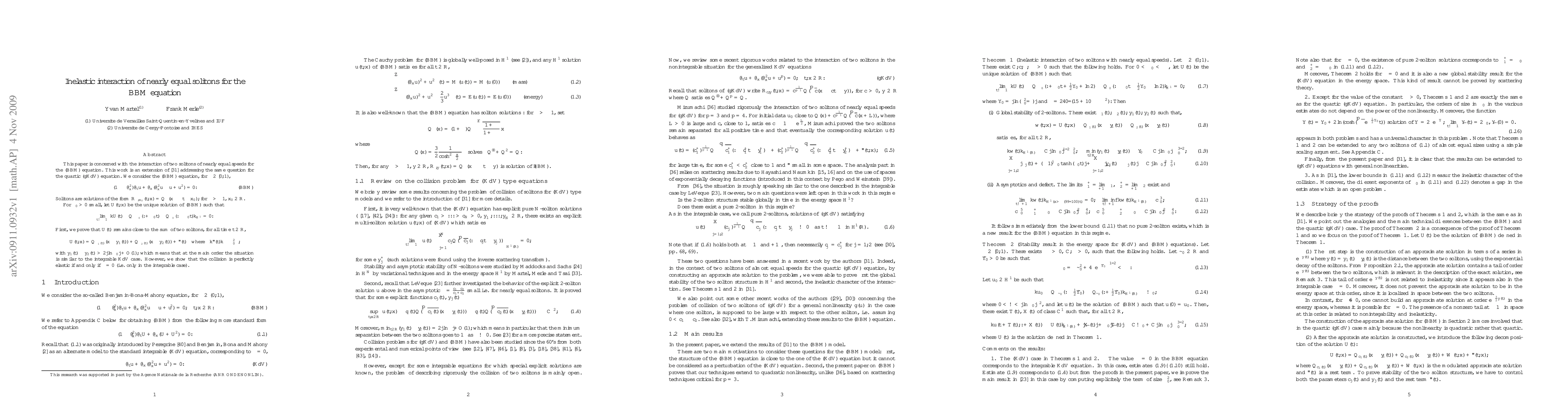 Researchers study the collision of nearly equal solitons in two physical systems, showing that they maintain their shape and separation over time, but with a non-elastic outcome except in one case.