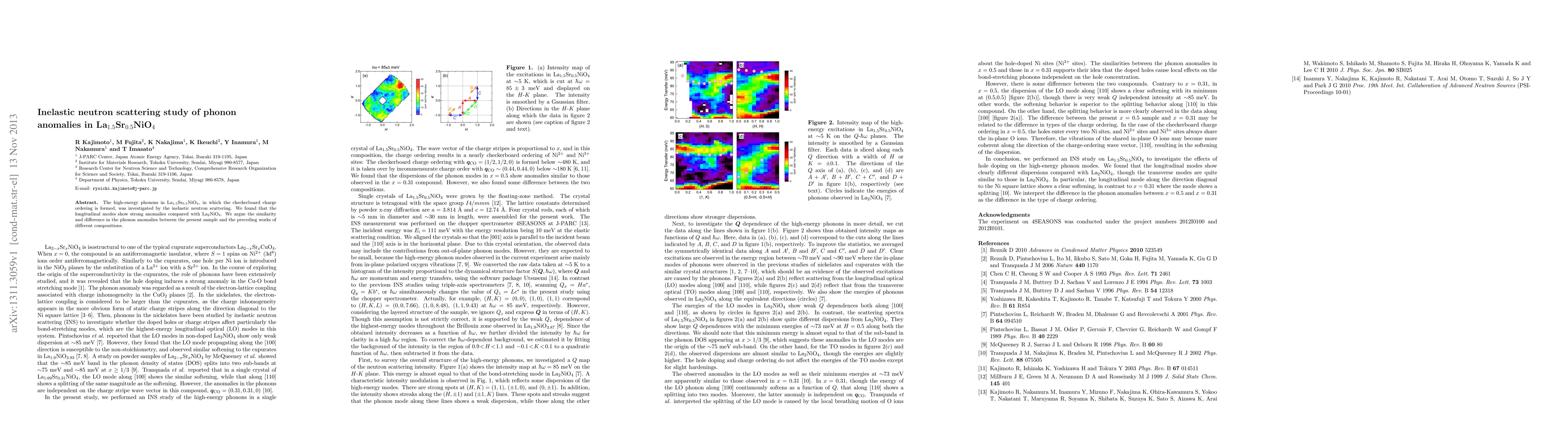 Researchers used inelastic neutron scattering to study phonon anomalies in La1.5Sr0.5NiO4, finding strong anomalies in longitudinal modes compared to similar samples.