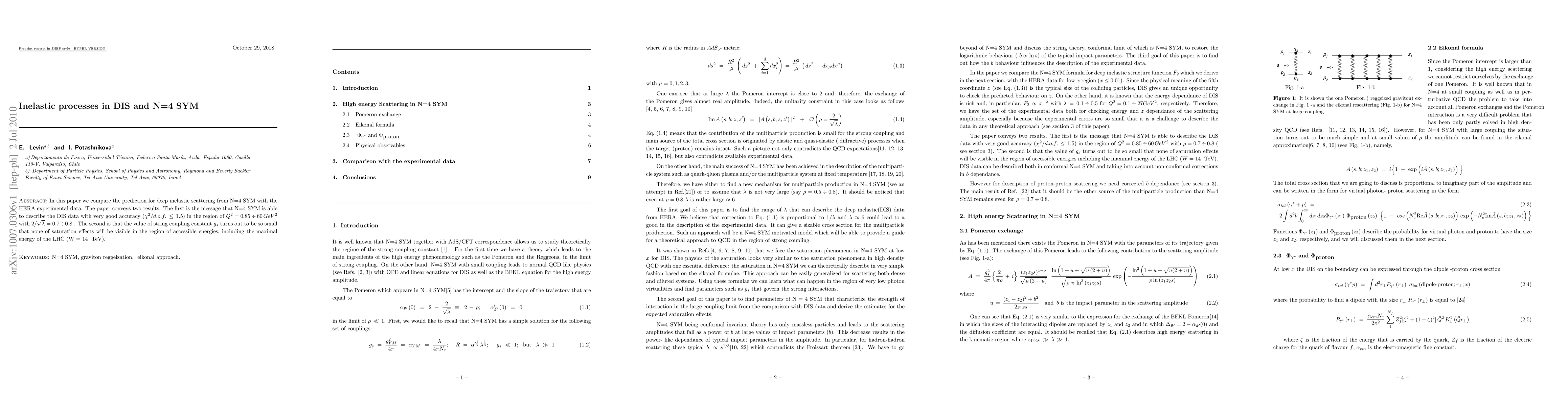 This paper compares N=4 SYM predictions for deep inelastic scattering (DIS) with HERA experimental data, finding good agreement ($\chi^2/d.o.f. \,\leq\,1.5$) for $Q^2$ between $0.85$ and $60\,GeV^2$. It concludes that the small string coupling constant $g_s$ implies no saturation effects will be visible in the energy range up to the LHC's maximum energy.