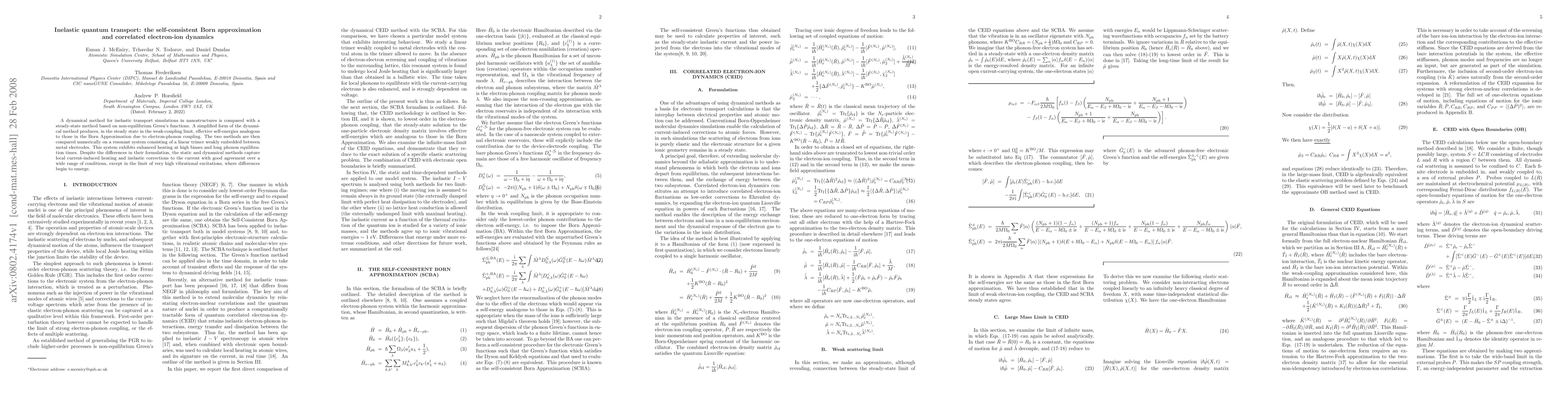 A dynamical method for inelastic transport simulations in nanostructures is compared with a steady-state method based on non-equilibrium Green's functions. A simplified form of the dynamical method produces, in the steady state in the weak-coupling limit, effective self-energies analogous to those in the Born Approximation due to electron-phonon coupling. The two methods are then compared numerically on a resonant system consisting of a linear trimer weakly embedded between metal electrodes. This system exhibits enhanced heating at high biases and long phonon equilibration times. Despite the differences in their formulation, the static and dynamical methods capture local current-induced heating and inelastic corrections to the current with good agreement over a wide range of conditions, except in the limit of very high vibrational excitations, where differences begin to emerge.