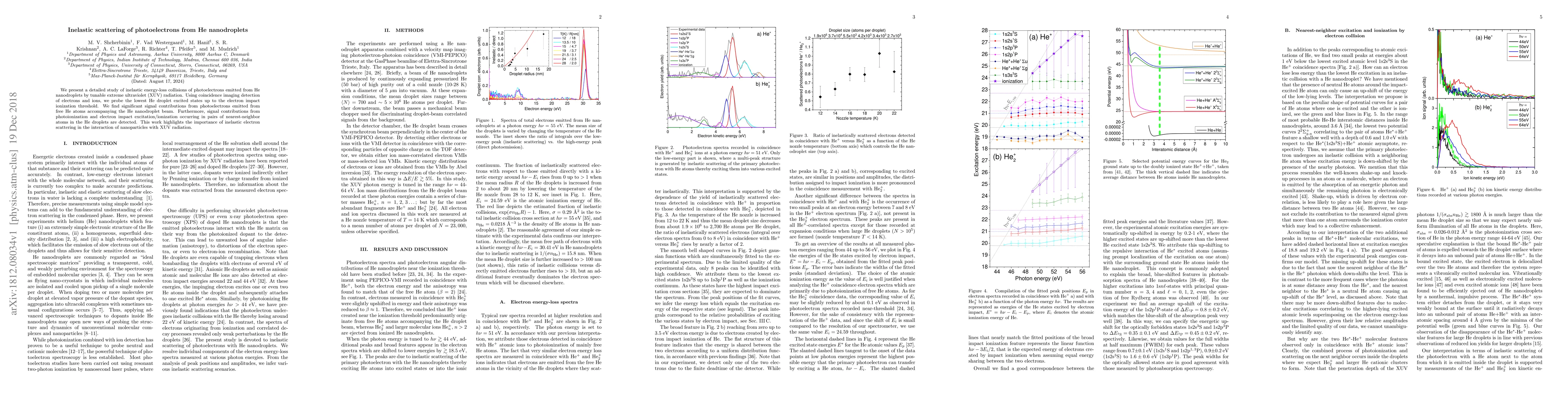 We present a detailed study of inelastic energy-loss collisions of photoelectrons emitted from He nanodroplets by tunable extreme ultraviolet (XUV) radiation. Using coincidence imaging detection of electrons and ions, we probe the lowest He droplet excited states up to the electron impact ionization threshold. We find significant signal contributions from photoelectrons emitted from free He atoms accompanying the He nanodroplet beam. Furthermore, signal contributions from photoionization and electron impact excitation/ionization occurring in pairs of nearest-neighbor atoms in the He droplets are detected. This work highlights the importance of inelastic electron scattering in the interaction of nanoparticles with XUV radiation.