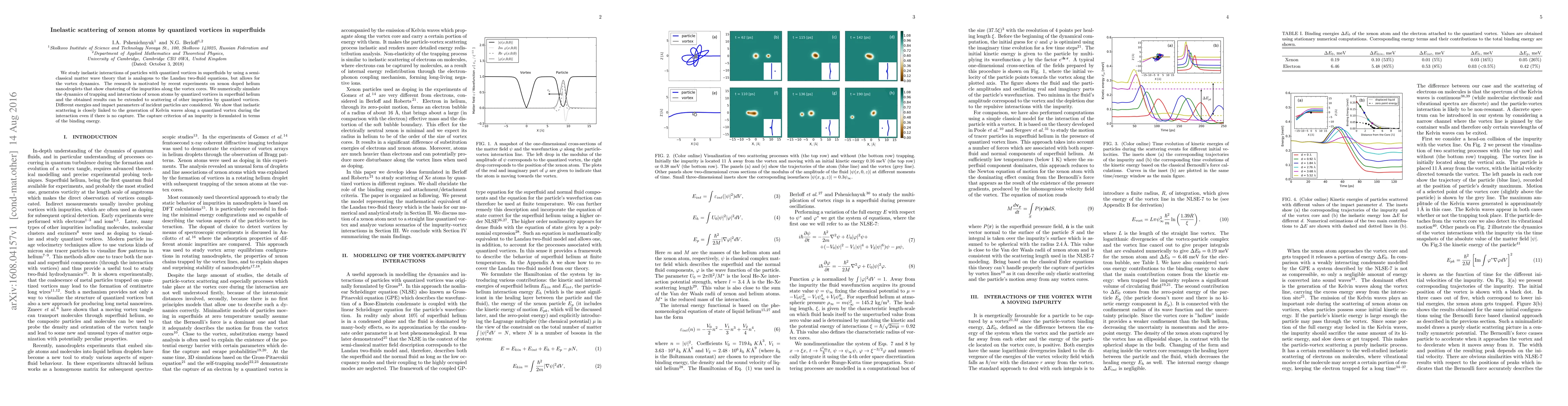 This paper investigates the inelastic scattering of xenon atoms by quantized vortices in superfluid helium using a semi-classical matter wave theory. The study reveals that inelastic scattering is closely related to the generation of Kelvin waves, and formulates a capture criterion based on binding energy.