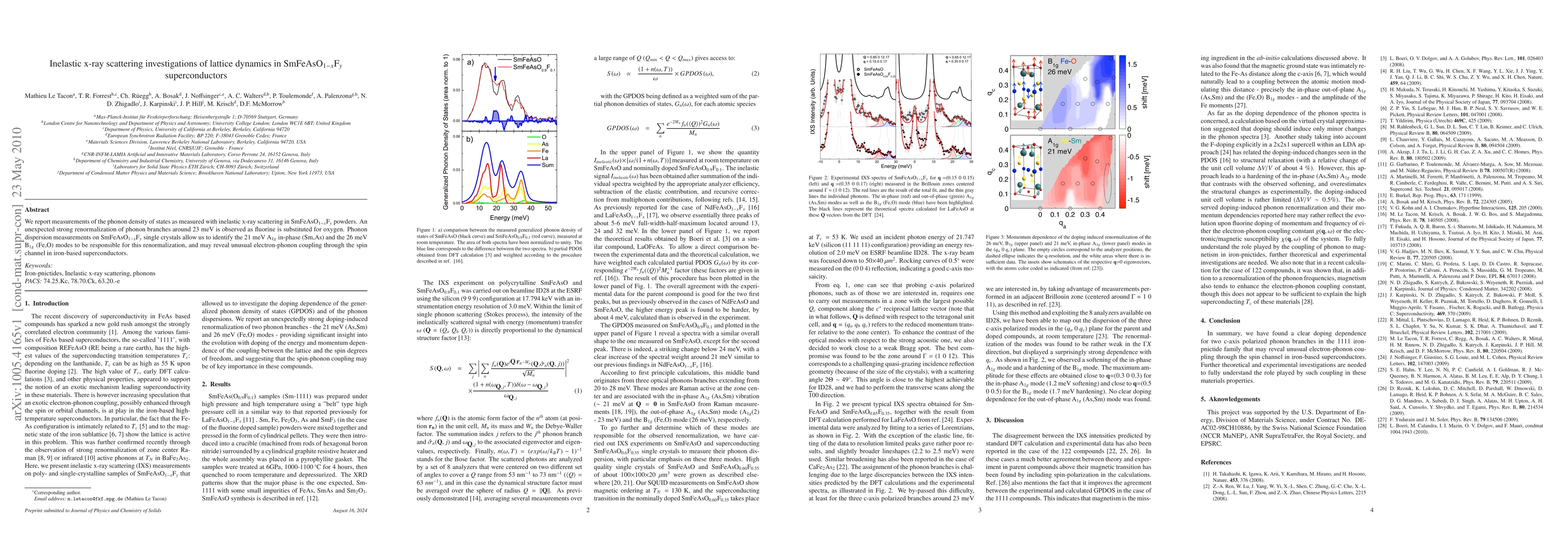 This study uses inelastic x-ray scattering to investigate lattice dynamics in SmFeAsO$_{1-x}$F$_y$ superconductors, revealing a significant phonon renormalization due to fluorine substitution. The 21 meV A$_{1g}$ (Sm,As) and 26 meV B$_{1g}$ (Fe,O) modes are identified as responsible for this effect, suggesting unusual electron-phonon coupling via the spin channel.