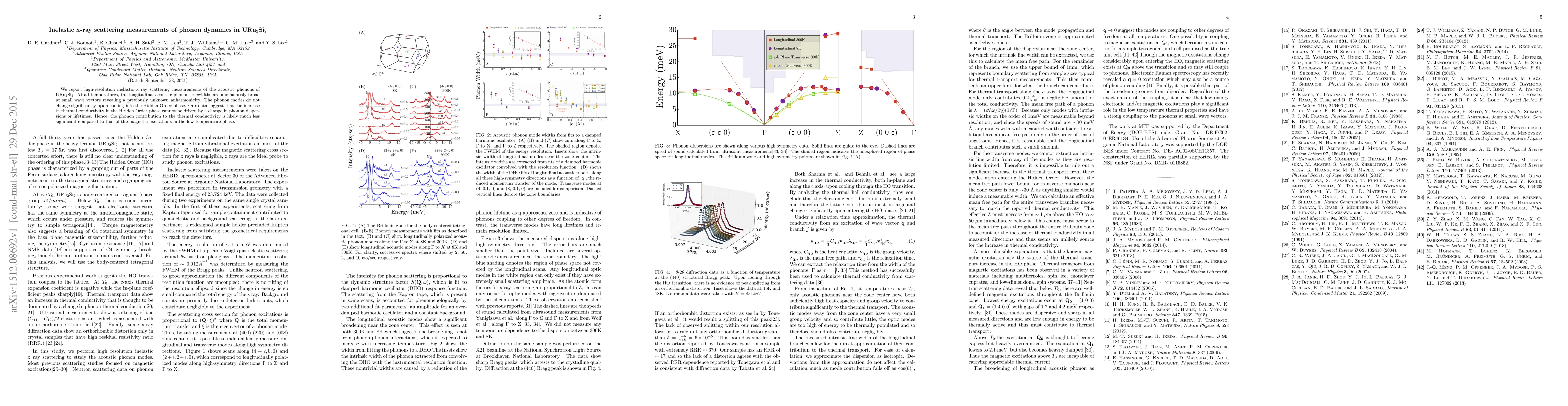 This study uses high-resolution inelastic x-ray scattering to investigate acoustic phonons in URu2Si2, finding minimal changes in phonon structure during the transition to the Hidden Order phase. Anomalous broadening of longitudinal acoustic phonons persists across temperatures, suggesting magnetic excitations, rather than phonon changes, likely drive increased thermal conductivity in the Hidden Order phase.