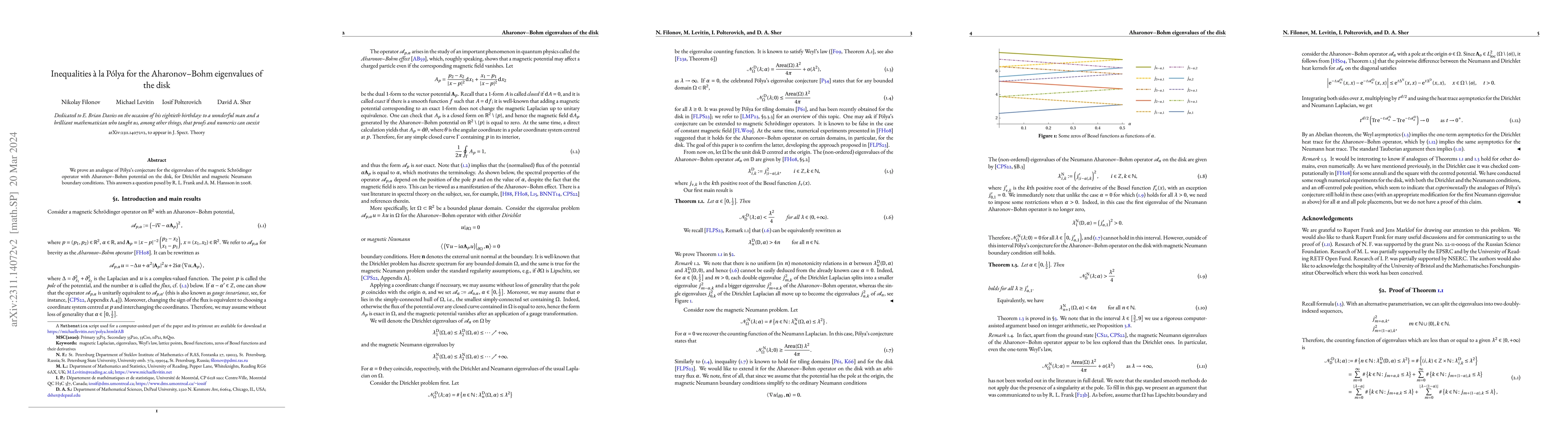 We prove an analogue of P\'olya's conjecture for the eigenvalues of the magnetic Schr\"odinger operator with Aharonov--Bohm potential on the disk, for Dirichlet and magnetic Neumann boundary conditions. This answers a question posed by R. L. Frank and A. M. Hansson in 2008.