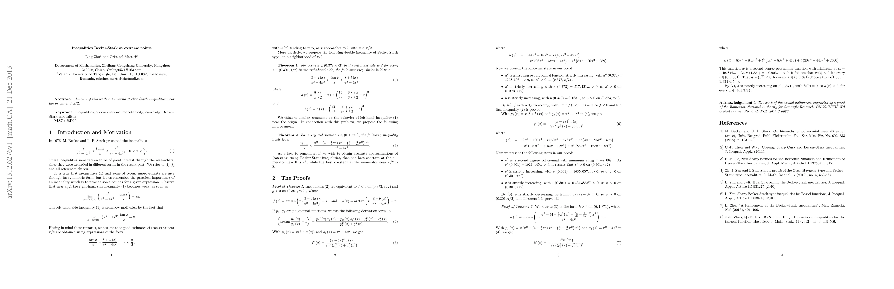 The aim of this work is to extend Becker-Stark inequalities near the origin and {\pi}/2.