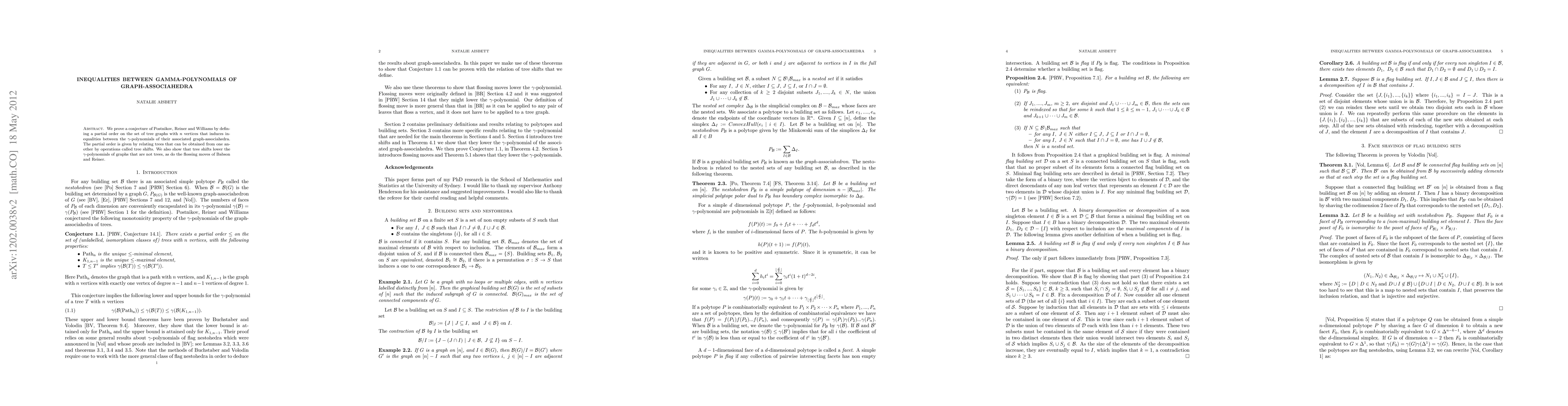 We prove a conjecture of Postnikov, Reiner and Williams by defining a partial order on the set of tree graphs with $n$ vertices that induces inequalities between the $\gamma$-polynomials of their associated graph-associahedra. The partial order is given by relating trees that can be obtained from one another by operations called tree shifts. We also show that tree shifts lower the $\gamma$-polynomials of graphs that are not trees, as do the flossing moves of Babson and Reiner.