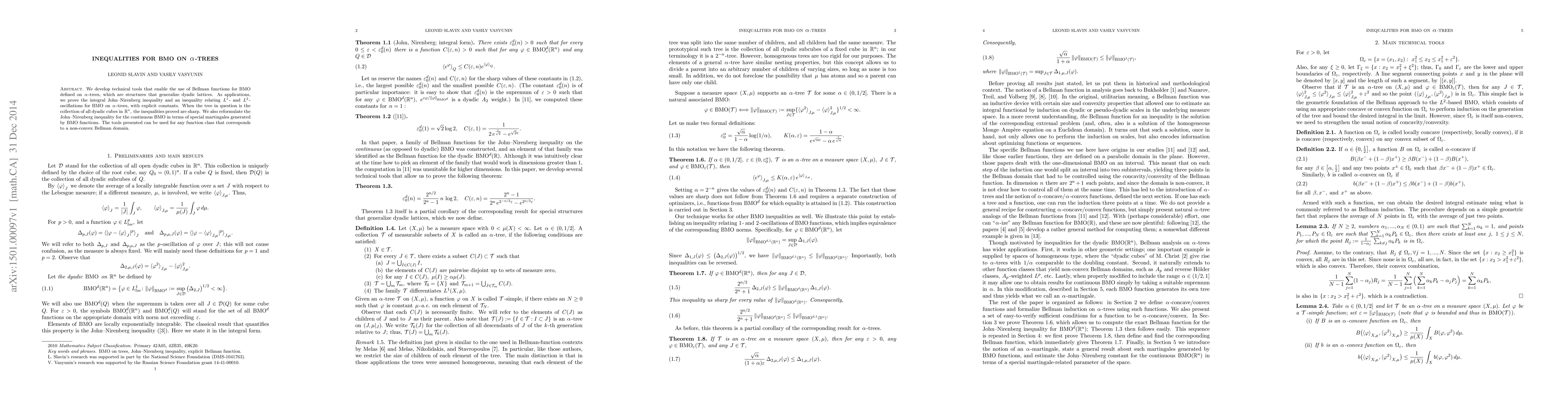 We develop technical tools that enable the use of Bellman functions for BMO defined on $\alpha$-trees, which are structures that generalize dyadic lattices. As applications, we prove the integral John--Nirenberg inequality and an inequality relating $L^1$- and $L^2$-oscillations for BMO on $\alpha$-trees, with explicit constants. When the tree in question is the collection of all dyadic cubes in $\mathbb{R}^n,$ the inequalities proved are sharp. We also reformulate the John--Nirenberg inequality for the continuous BMO in terms of special martingales generated by BMO functions. The tools presented can be used for any function class that corresponds to a non-convex Bellman domain.