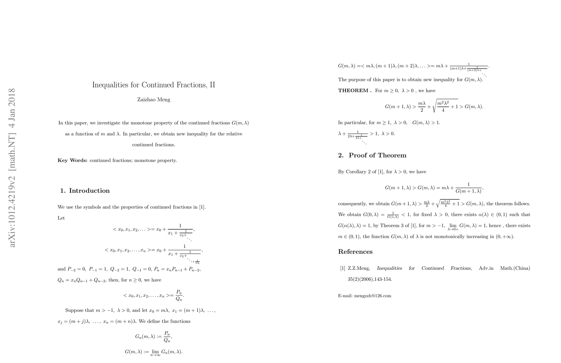 In this paper, we investigate the monotone property of the continued fractions $G(m,\lambda)$ as a function of $m$ and $\lambda$. In particular, we obtain new inequality for the relative continued fractions.