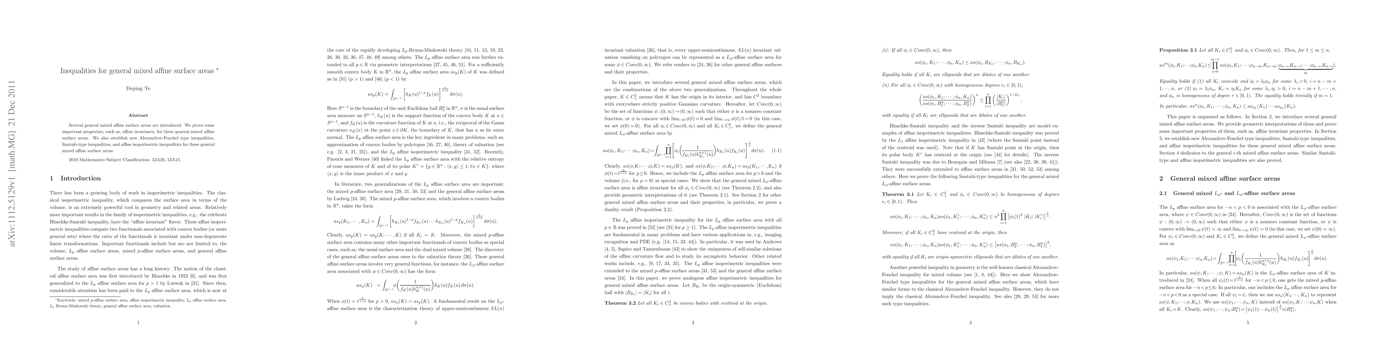 This paper introduces several general mixed affine surface areas and proves their affine invariance. It also establishes new inequalities, including Alexandrov-Fenchel type, Santaló-type, and affine isoperimetric inequalities, for these surface areas.