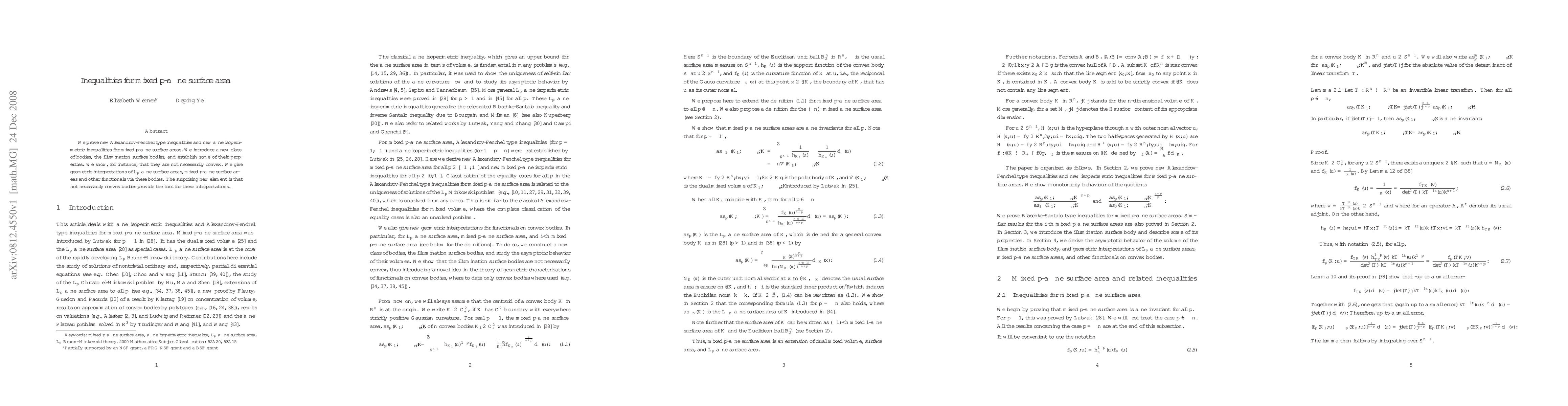 We prove new Alexandrov-Fenchel type inequalities and new affine isoperimetric inequalities for mixed $p$-affine surface areas. We introduce a new class of bodies, the illumination surface bodies, and establish some of their properties. We show, for instance, that they are not necessarily convex. We give geometric interpretations of $L_p$ affine surface areas, mixed $p$-affine surface areas and other functionals via these bodies. The surprising new element is that not necessarily convex bodies provide the tool for these interpretations.