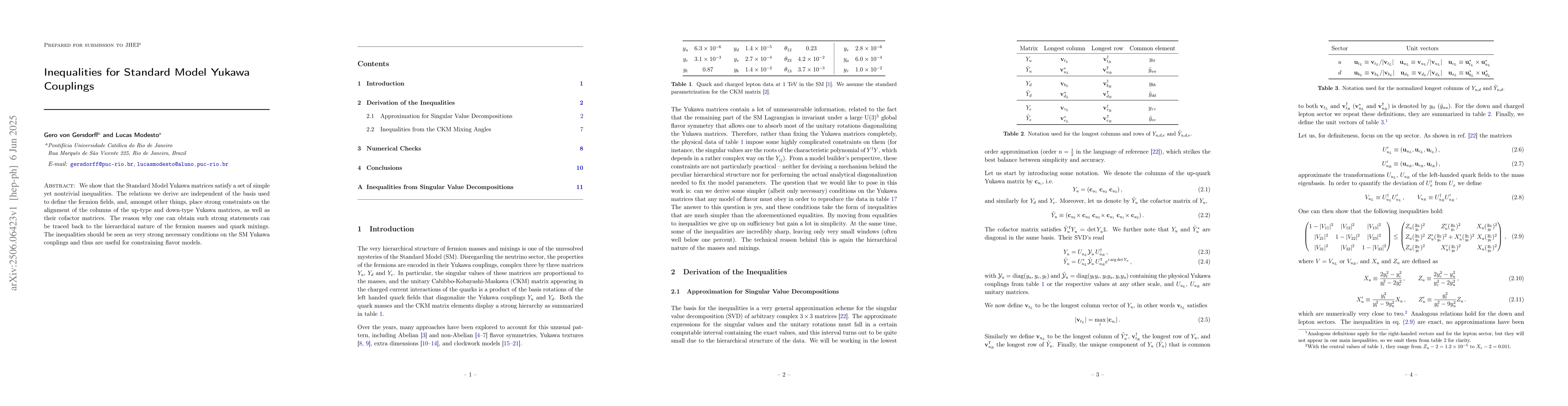 Researchers found simple yet nontrivial inequalities for Standard Model Yukawa couplings, which impose strong constraints on fermion masses and quark mixings, providing useful tools to constrain flavor models.