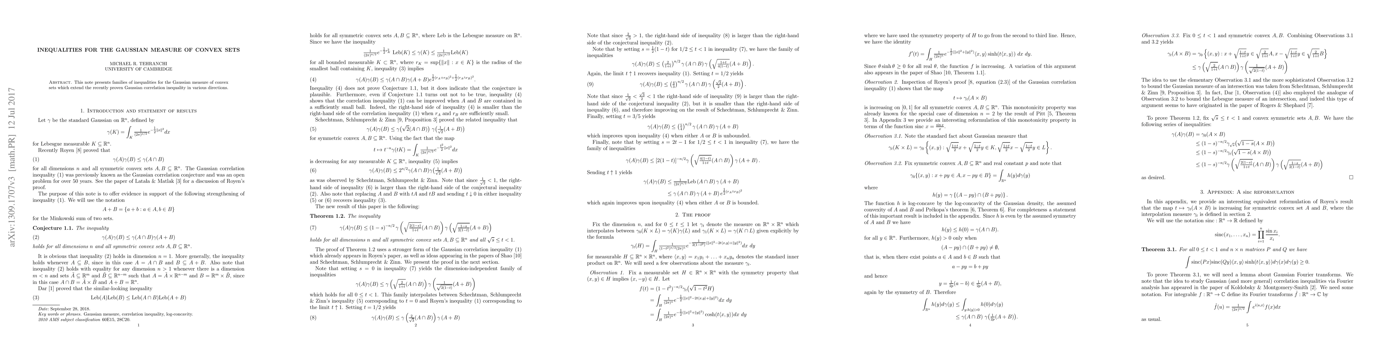 This note presents families of inequalities for the Gaussian measure of convex sets which extend the recently proven Gaussian correlation inequality in various directions.