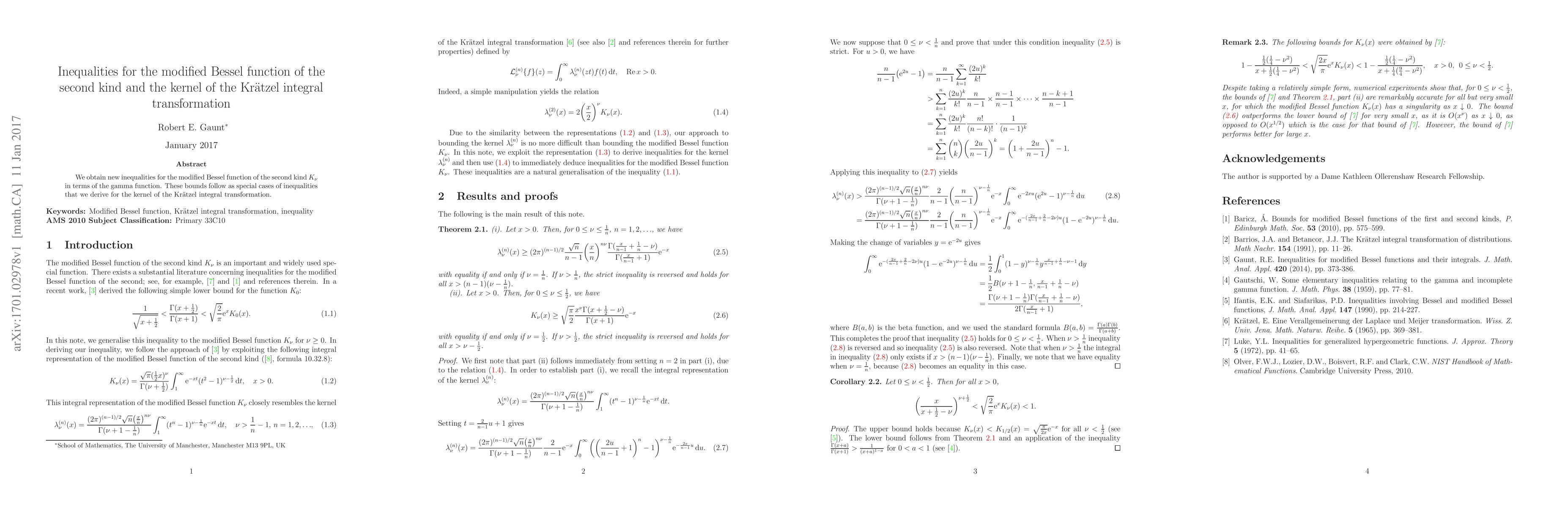 Summary: This paper presents new inequalities for the modified Bessel function of the second kind $K_\nu$ using the gamma function, derived as special cases from broader inequalities for the kernel of the Krätzel integral transformation.