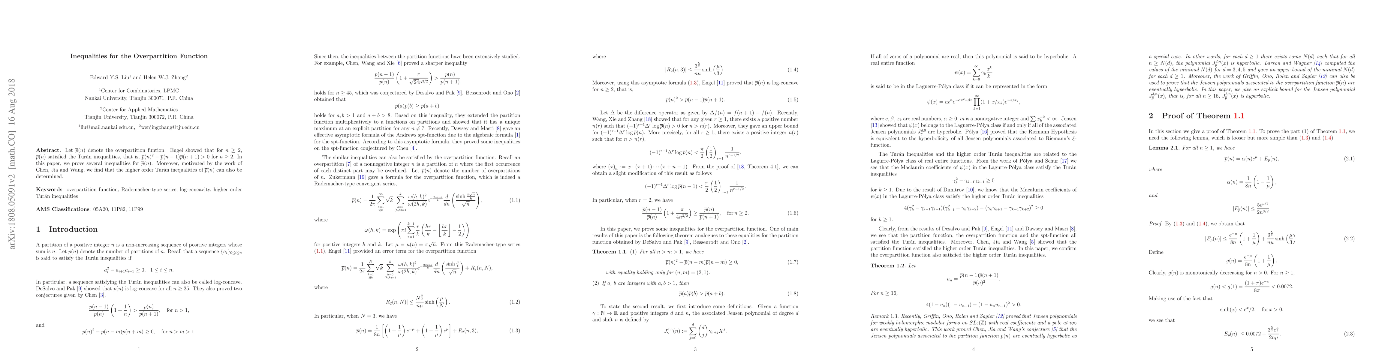 This paper proves several inequalities for the overpartition function $\overline{p}(n)$, extending Engel's Turán inequalities, and determines higher order Turán inequalities inspired by the work of Chen, Jia, and Wang.