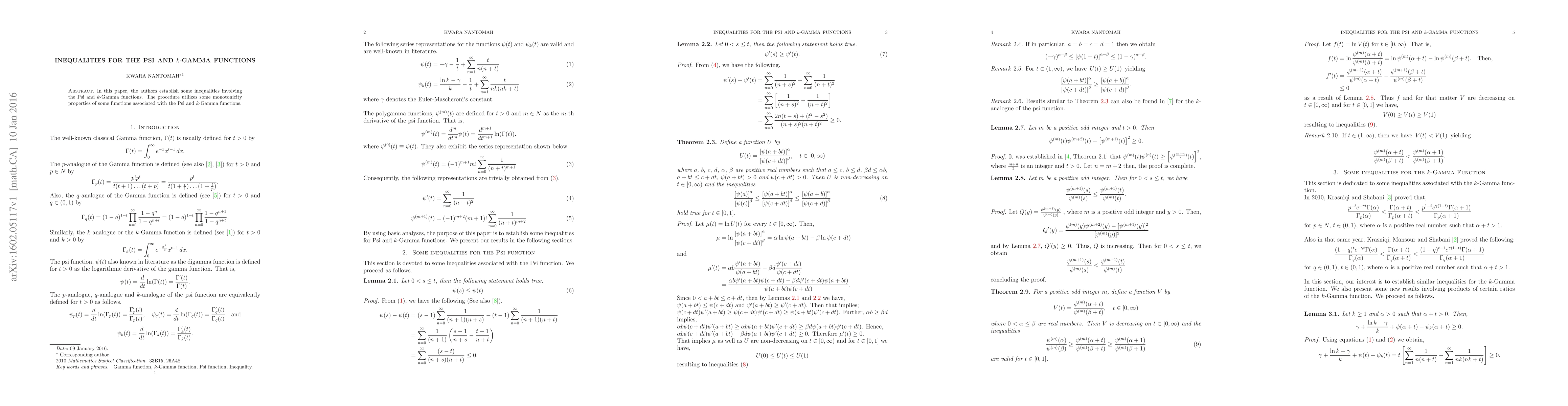 In this paper, the authors establish some inequalities involving the Psi and $k$-Gamma functions. The procedure utilizes some monotonicity properties of some functions associated with the Psi and $k$-Gamma functions.