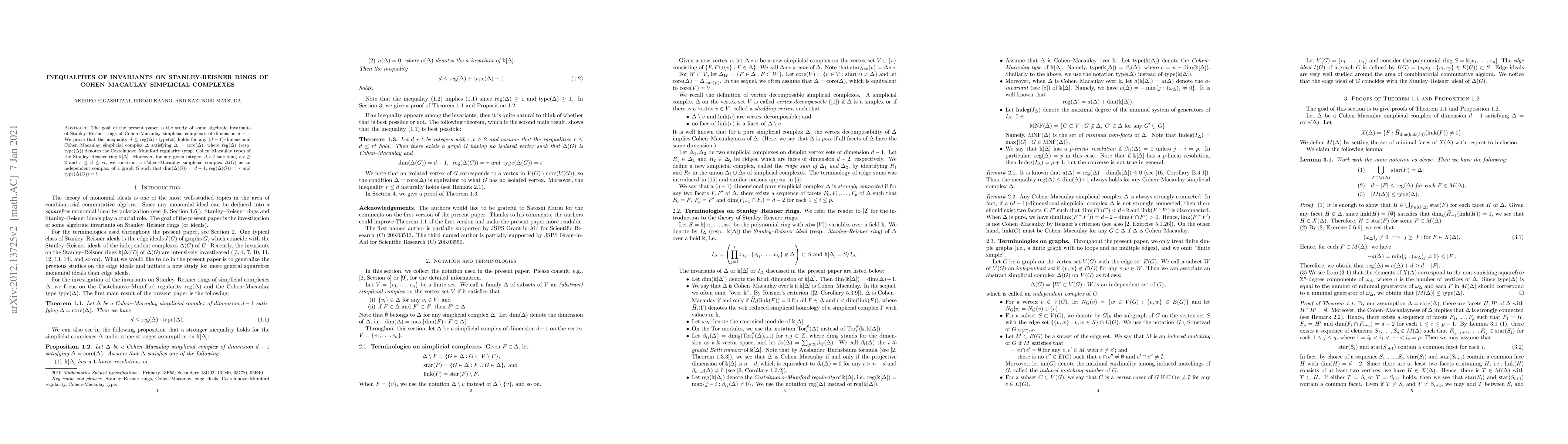 This paper investigates algebraic invariants of Stanley-Reisner rings for Cohen-Macaulay simplicial complexes, proving the inequality $d \leq \mathrm{reg}(\Delta) \cdot \mathrm{type}(\Delta)$ for specific complexes. It also constructs a Cohen-Macaulay simplicial complex with prescribed regularity and type.