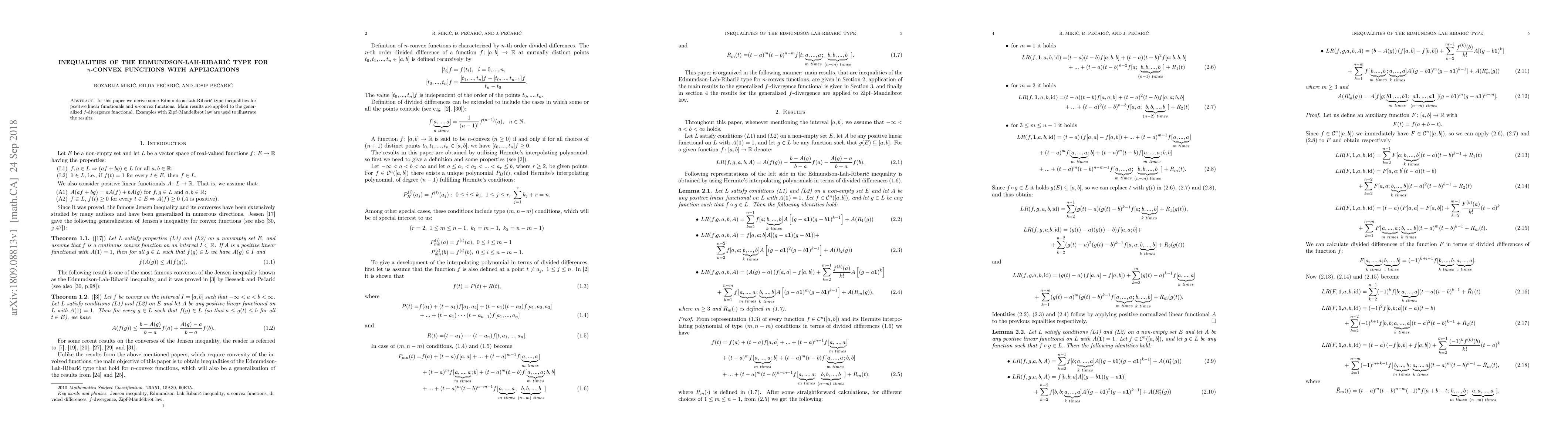 In this paper we derive some Edmundson-Lah-Ribaric type inequalities for positive linear functionals and n-convex functions. Main results are applied to the generalized f-divergence functional. Examples with Zipf-Mandelbrot law are used to illustrate the results.
