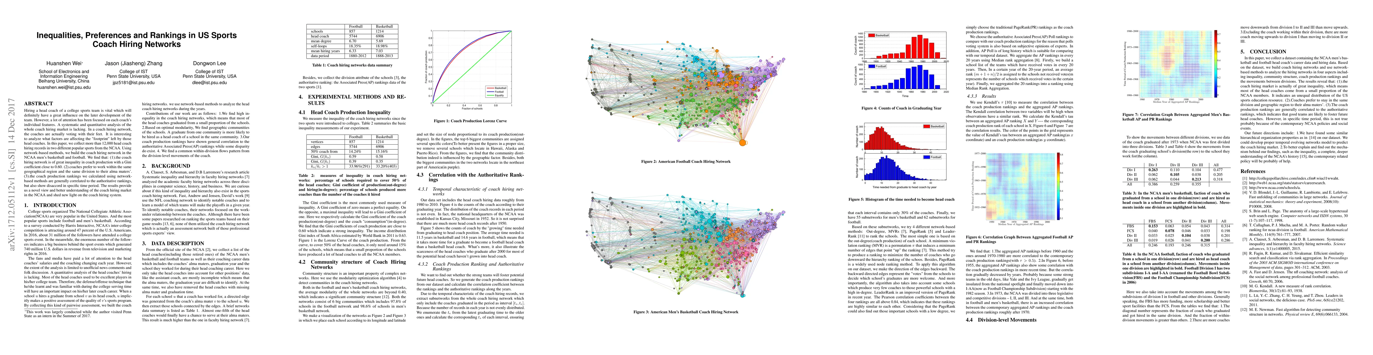 A study analyzing over 12,000 NCAA coach hiring records reveals a highly unequal coach hiring network with preferences for same-region and division coaches from alma mater, showing correlations to authoritative rankings but also discrepancies over time.