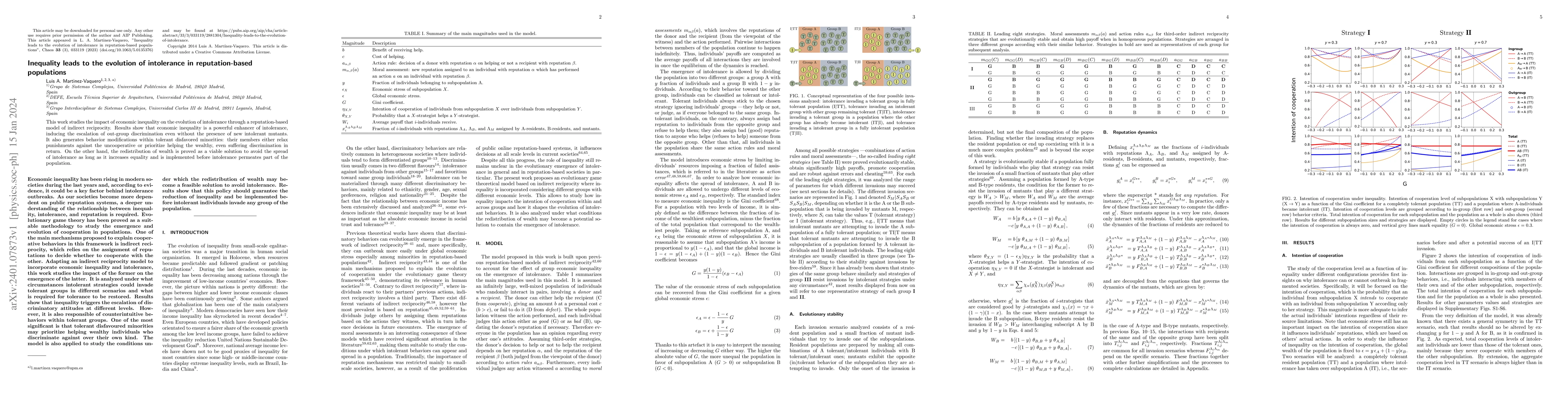 This study reveals that economic inequality fosters intolerance in reputation-based populations by escalating out-group discrimination, even without new intolerant individuals. Redistribution of wealth can mitigate this effect, provided it enhances equality before intolerance becomes widespread.