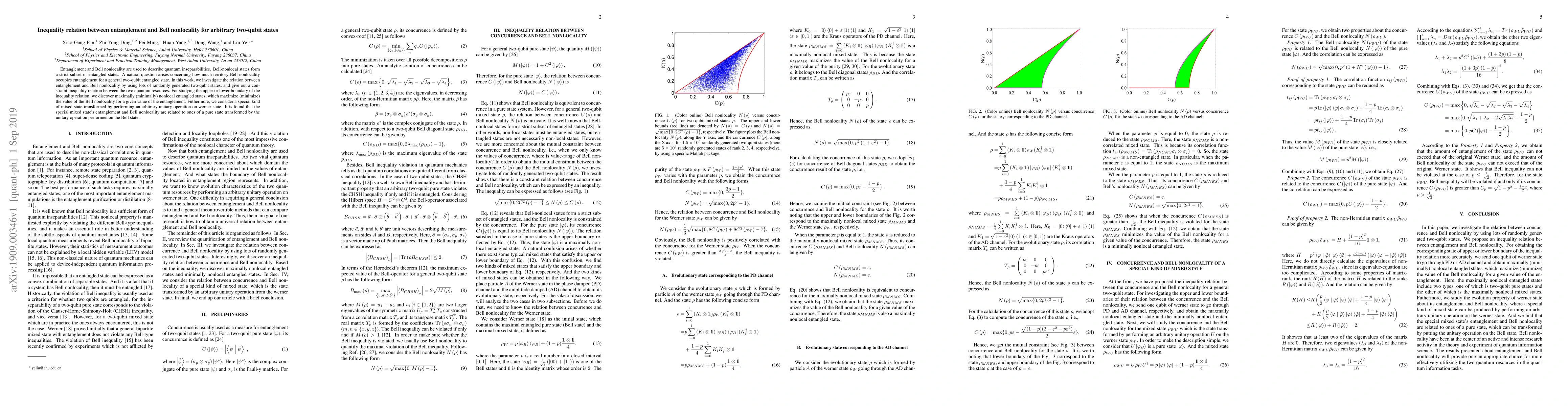 This paper explores the relationship between entanglement and Bell nonlocality in arbitrary two-qubit states, establishing a constraint inequality relation between the two. It identifies maximally and minimally nonlocal entangled states to determine the upper and lower boundaries of this inequality, and examines the entanglement and Bell nonlocality of a special mixed state derived from a unitary transformation on a Werner state.