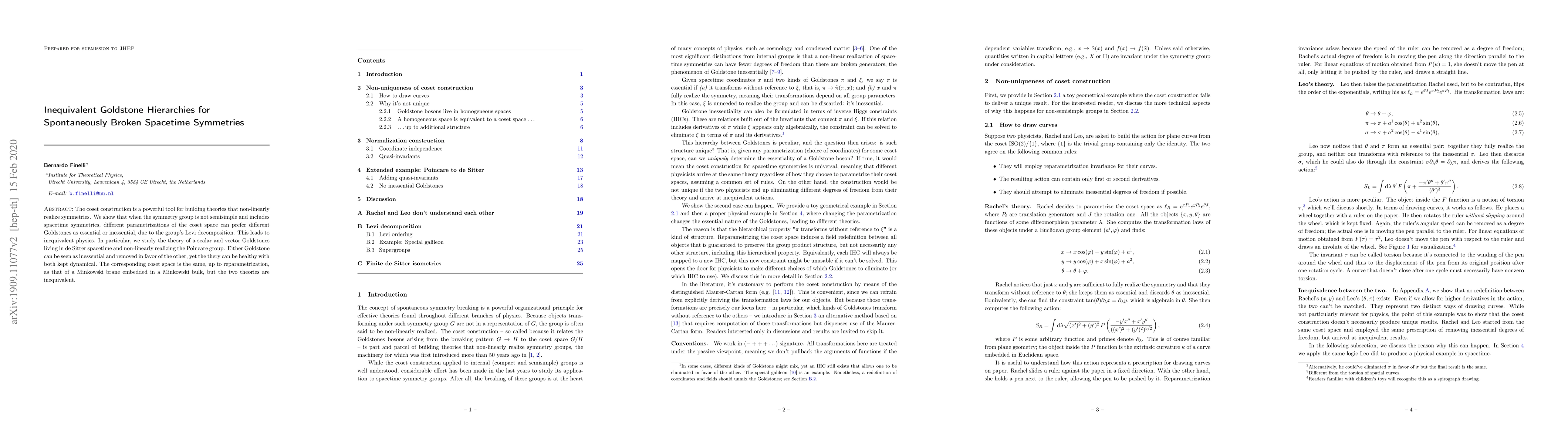 The coset construction is a powerful tool for building theories that non-linearly realize symmetries. We show that when the symmetry group is not semisimple and includes spacetime symmetries, different parametrizations of the coset space can prefer different Goldstones as essential or inessential, due to the group's Levi decomposition. This leads to inequivalent physics. In particular, we construct a theory of a scalar and vector Goldstones living in de Sitter spacetime and non-linearly realizing the Poincar\'e group. Either Goldstone can be seen as inessential and removed in favor of the other, but the theory is only healthy when both are kept dynamical. The corresponding coset space is the same, up to reparametrization, as that of a Minkowski brane embedded in a Minkowski bulk, but the two theories are inequivalent.