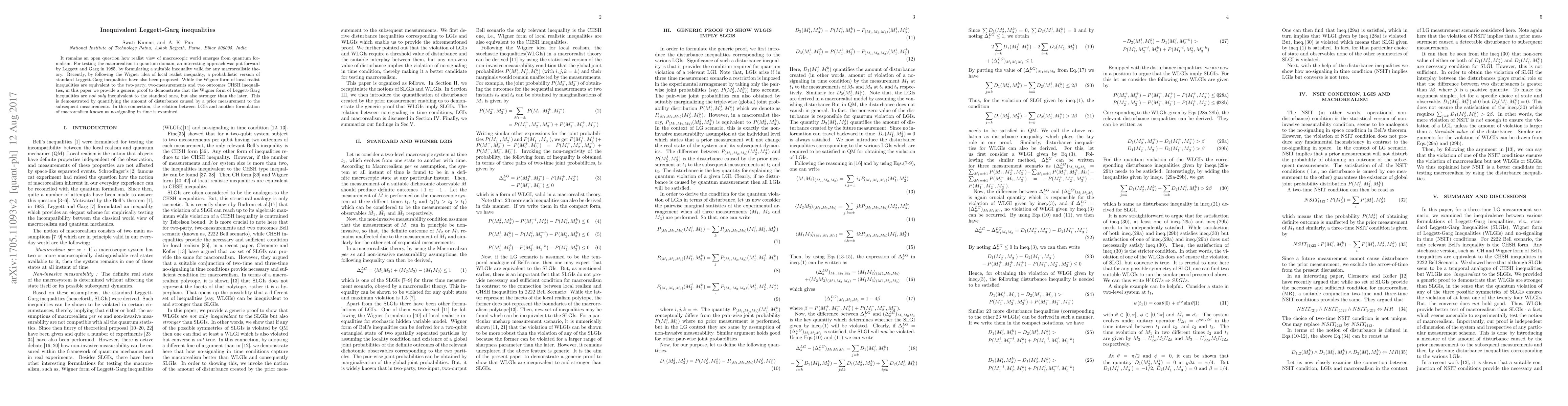 It remains an open question how realist view of macroscopic world emerges from quantum formalism. For testing the macrorealism in quantum domain, an interesting approach was put forward by Leggett and Garg in $1985$, by formulating a suitable inequality valid for any macrorealistic theory. Recently, by following the Wigner idea of local realist inequality, a probabilistic version of standard Leggett-Garg inequalities have also been proposed. While the Wigner form of local realist inequalities are equivalent to the two-party, two-measurements and two outcomes CHSH inequalities, in this paper we provide a generic proof to demonstrate that the Wigner form of Leggett-Garg inequalities are not only inequivalent to the standard ones but also stronger than the later. This is demonstrated by quantifying the amount of disturbance caused by a prior measurement to the subsequent measurements. In this connection, the relation between LGIs and another formulation of macrorealism known as no-signaling in time is examined.
