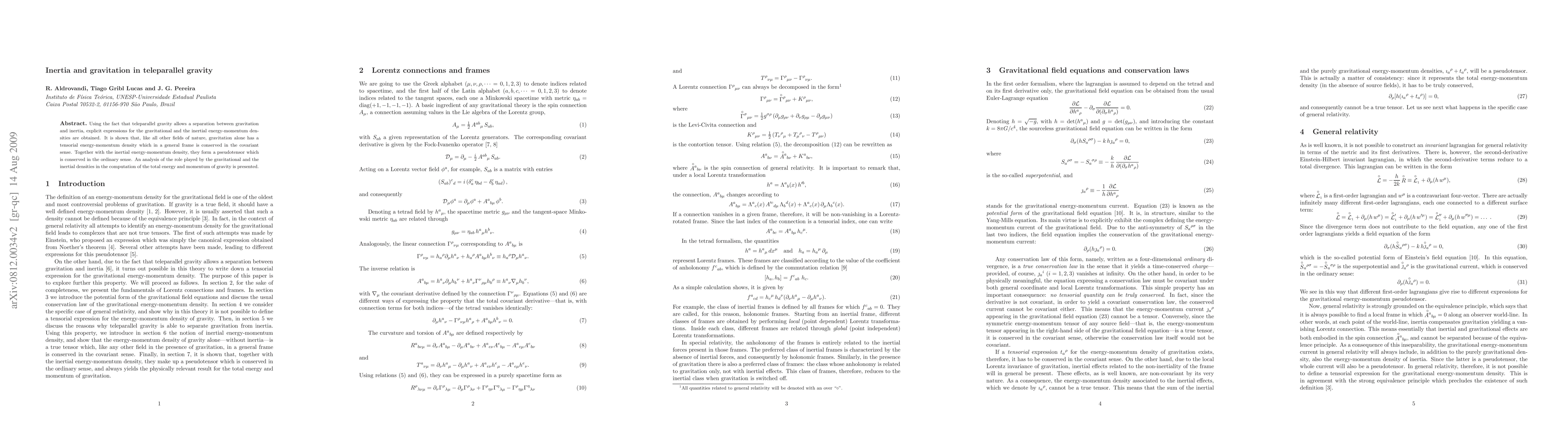 This paper explores the distinct separation between gravitation and inertia in teleparallel gravity, deriving explicit expressions for gravitational and inertial energy-momentum densities. It demonstrates that gravitation alone possesses a conserved tensorial energy-momentum density, while the combination of gravitational and inertial densities forms a conserved pseudotensor.