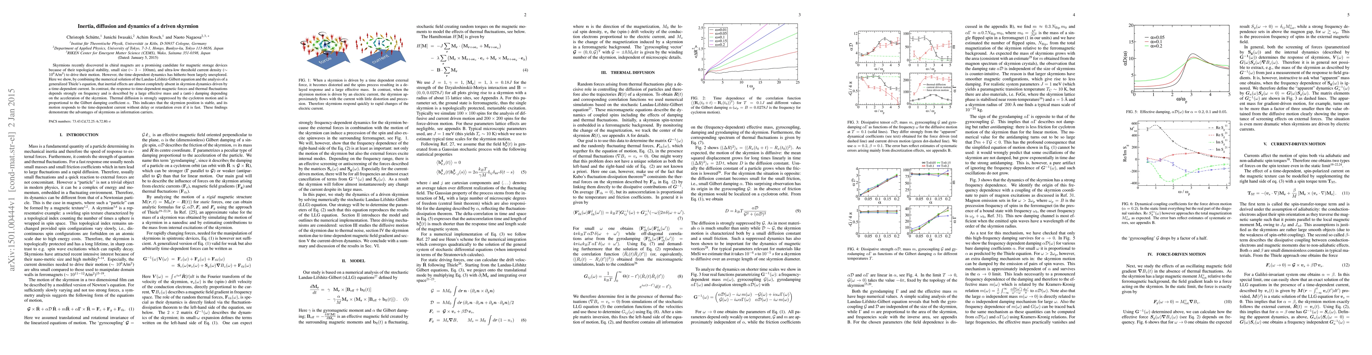 Skyrmions recently discovered in chiral magnets are a promising candidate for magnetic storage devices because of their topological stability, small size ($\sim 3-100$nm), and ultra-low threshold current density ($\sim 10^{6}$A/m$^2$) to drive their motion. However, the time-dependent dynamics has hitherto been largely unexplored. Here we show, by combining the numerical solution of the Landau-Lifshitz-Gilbert equation and the analysis of a generalized Thiele's equation, that inertial effects are almost completely absent in skyrmion dynamics driven by a time-dependent current. In contrast, the response to time-dependent magnetic forces and thermal fluctuations depends strongly on frequency and is described by a large effective mass and a (anti-) damping depending on the acceleration of the skyrmion. Thermal diffusion is strongly suppressed by the cyclotron motion and is proportional to the Gilbert damping coefficient $\alpha$. This indicates that the skyrmion position is stable, and its motion responds to the time-dependent current without delay or retardation even if it is fast. These findings demonstrate the advantages of skyrmions as information carriers.