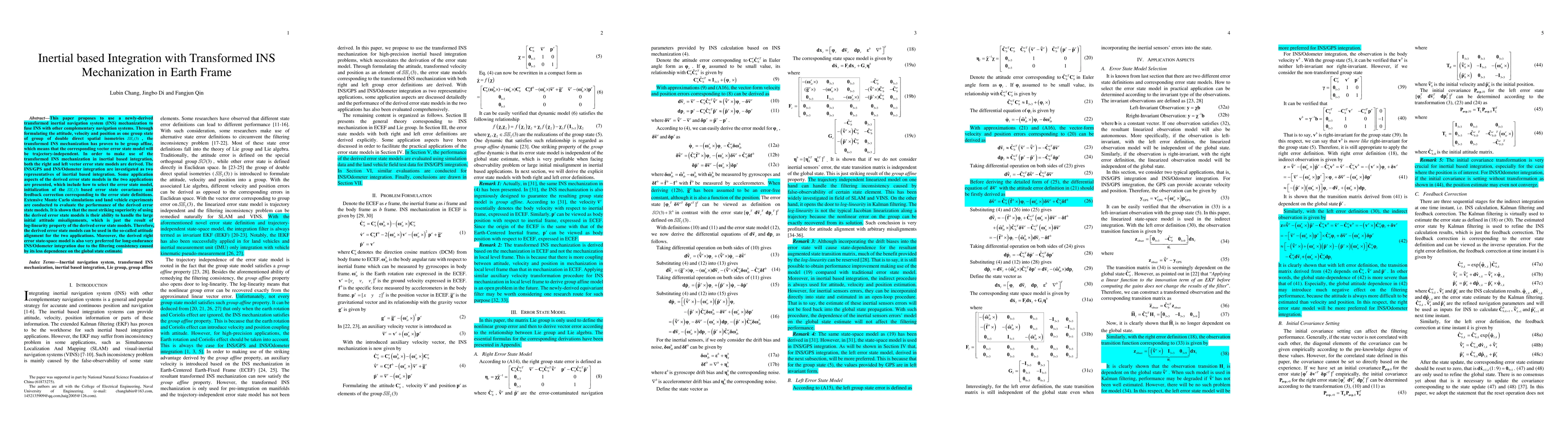 This paper proposes to use a newly-derived transformed inertial navigation system (INS) mechanization to fuse INS with other complementary navigation systems. Through formulating the attitude, velocity and position as one group state of group of double direct spatial isometries SE2(3), the transformed INS mechanization has proven to be group affine, which means that the corresponding vector error state model will be trajectory-independent. In order to make use of the transformed INS mechanization in inertial based integration, both the right and left vector error state models are derived. The INS/GPS and INS/Odometer integration are investigated as two representatives of inertial based integration. Some application aspects of the derived error state models in the two applications are presented, which include how to select the error state model, initialization of the SE2(3) based error state covariance and feedback correction corresponding to the error state definitions. Extensive Monte Carlo simulations and land vehicle experiments are conducted to evaluate the performance of the derived error state models. It is shown that the most striking superiority of using the derived error state models is their ability to handle the large initial attitude misalignments, which is just the result of log-linearity property of the derived error state models. Therefore, the derived error state models can be used in the so-called attitude alignment for the two applications. Moreover, the derived right error state-space model is also very preferred for long-endurance INS/Odometer integration due to the filtering consistency caused by its less dependence on the global state estimate.