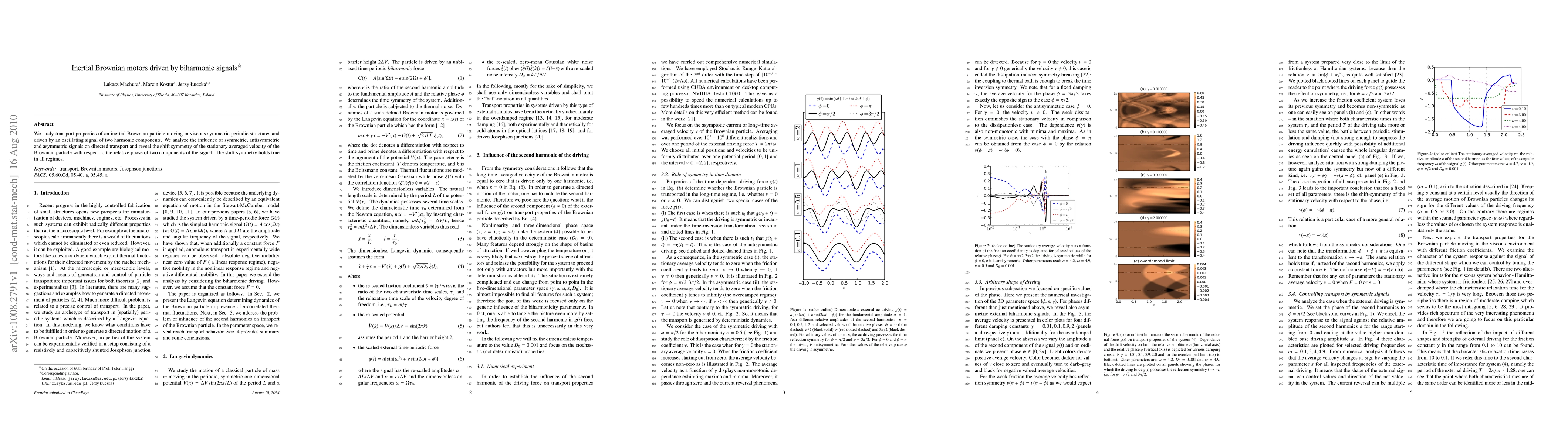 This paper investigates the transport behavior of inertial Brownian motors in viscous periodic structures under biharmonic signals. It reveals that the stationary averaged velocity of the particle exhibits shift symmetry concerning the relative phase of the signal components across all regimes.