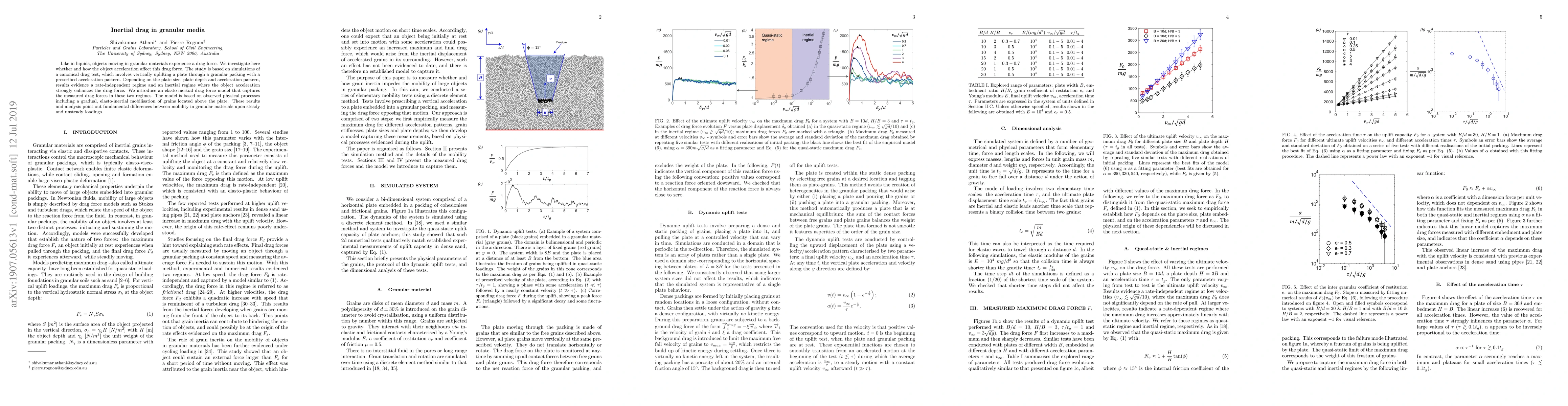 This paper investigates how object acceleration affects drag force in granular media through simulations of a vertical plate uplift test. The study identifies two regimes: a rate-independent regime and an inertial regime where acceleration enhances drag force, leading to the development of an elasto-inertial drag force model that captures these dynamics.