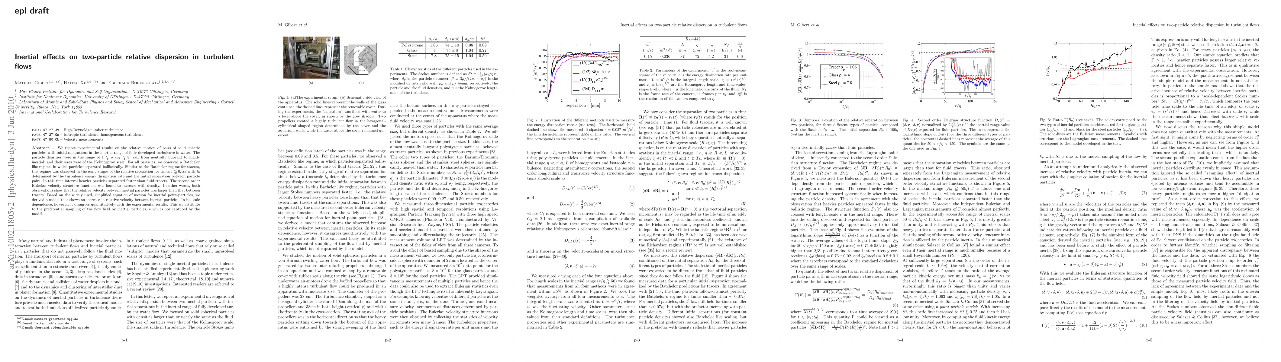 This study investigates the relative dispersion of solid spherical particles in turbulent water flows, finding that inertial particles separate faster than fluid tracers due to their higher relative velocities. The model derived from the simplified equation of motion for inertial particles fails to quantitatively match experimental results, likely due to the model's inability to account for the preferential flow sampling by inertial particles.