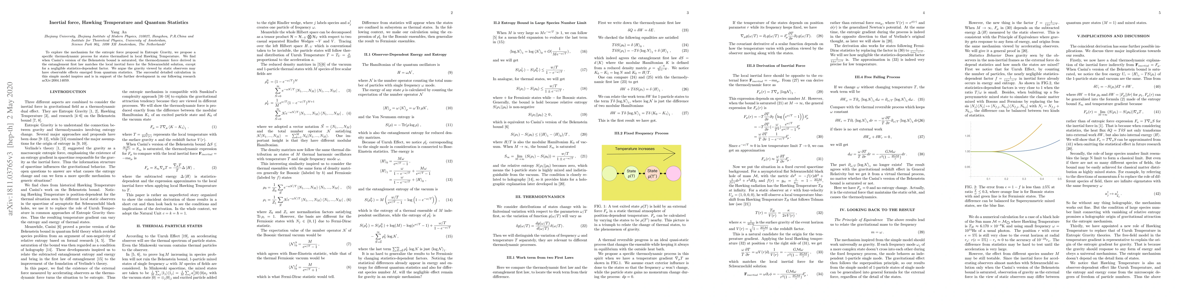 This paper explores the entropic force mechanism in Entropic Gravity through a thermodynamic process in local Hawking temperature, showing that inertial force matches thermodynamic force in the Schwarzschild solution, except for a minor statistics-dependent factor. It suggests observable gravitational effects from quantum statistics, supporting further research in the field.