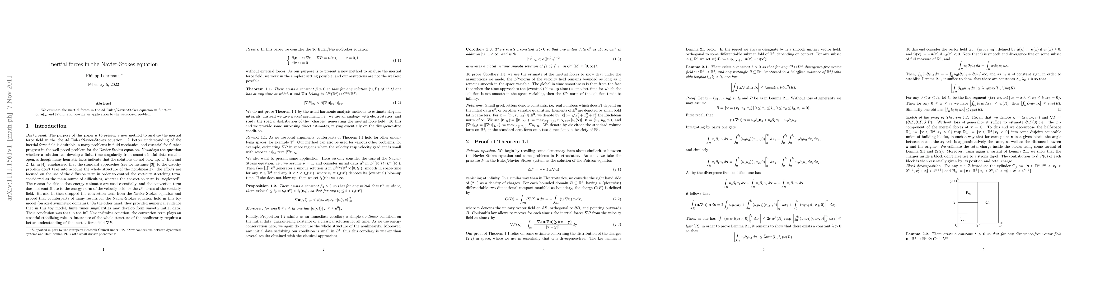 Summary: This paper estimates inertial forces within the 3D Euler/Navier-Stokes equations based on the infinity norms of velocity and its gradient, and applies these findings to the well-posedness of related problems.