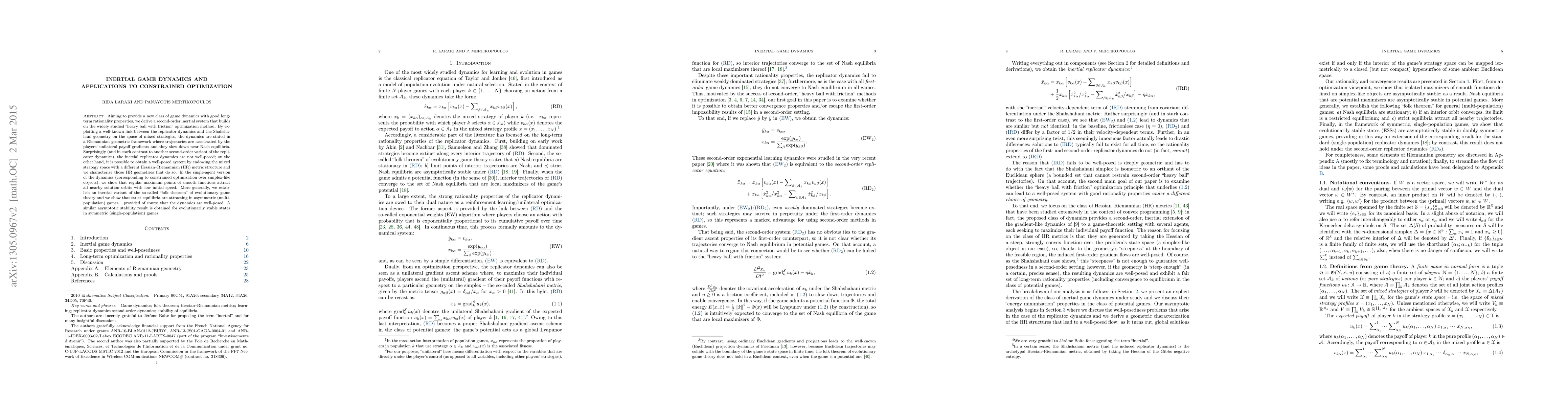 This paper introduces a novel inertial game dynamics based on the "heavy ball with friction" optimization method, framed within a Riemannian geometric context. It explores the conditions under which these dynamics lead to the convergence of players to Nash equilibria or evolutionarily stable strategies, highlighting the importance of a specific Hessian-Riemannian metric structure for achieving well-posedness and stability.