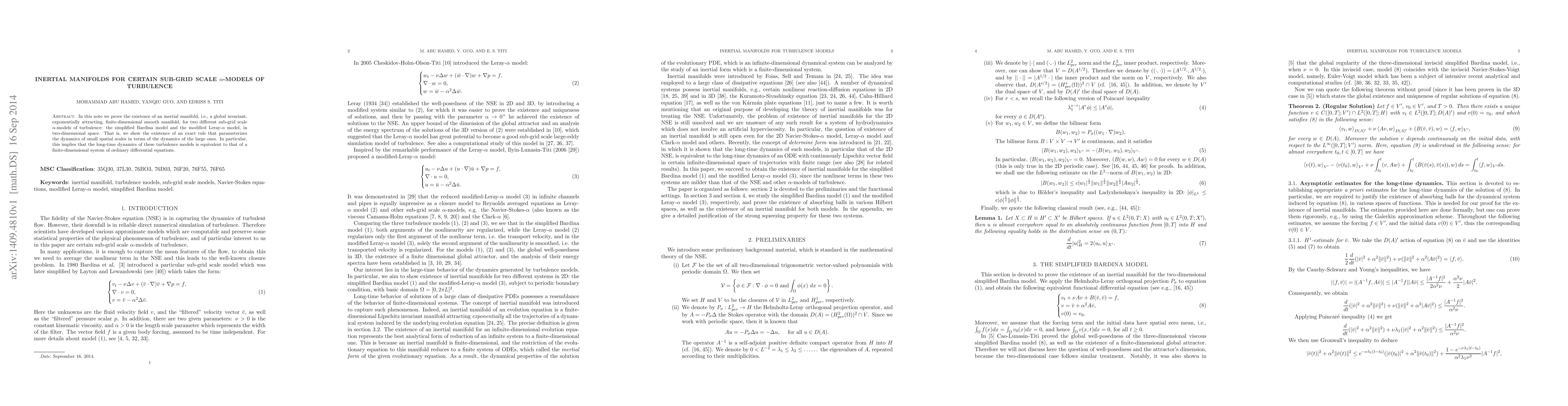 This paper proves the existence of an inertial manifold for two sub-grid scale $\alpha$-models of turbulence, demonstrating that the long-term dynamics of these models can be described by a finite-dimensional system. This finding provides an exact rule linking small-scale dynamics to large-scale dynamics in two-dimensional turbulence.
