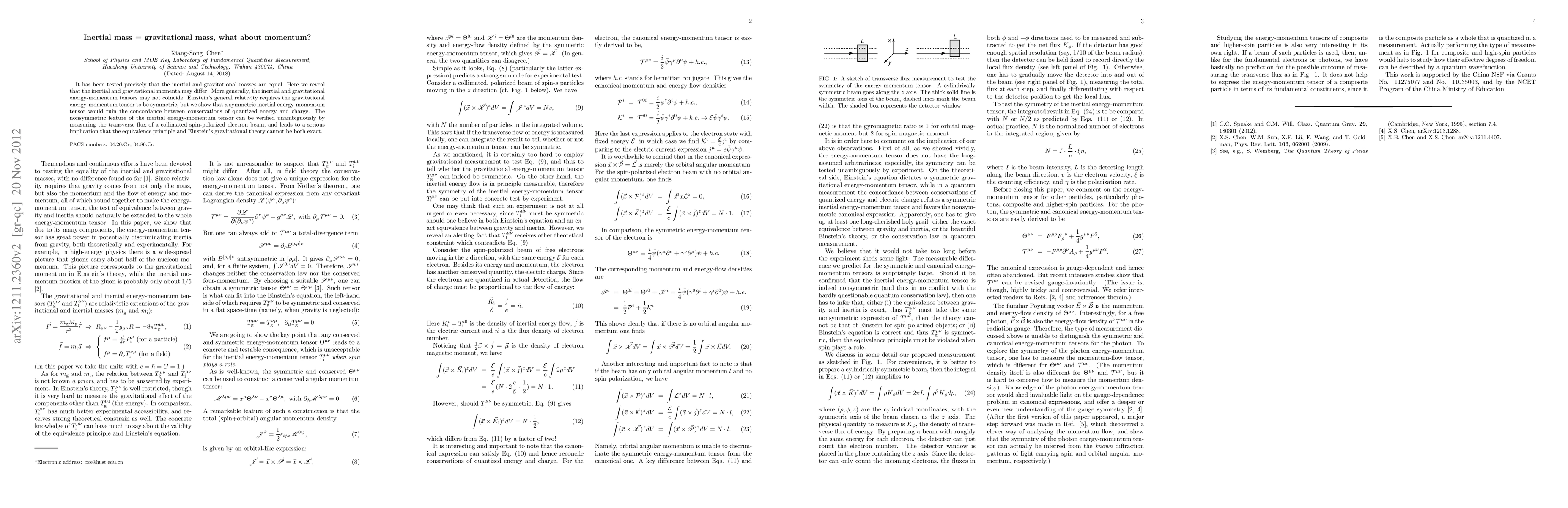 It has been tested precisely that the inertial and gravitational masses are equal. Here we reveal that the inertial and gravitational momenta may differ. More generally, the inertial and gravitational energy-momentum tensors may not coincide: Einstein's general relativity requires the gravitational energy-momentum tensor to be symmetric, but we show that a symmetric inertial energy-momentum tensor would ruin the concordance between conservations of quantized energy and charge. The nonsymmetric feature of the inertial energy-momentum tensor can be verified unambiguously by measuring the transverse flux of a collimated spin-polarized electron beam, and leads to a serious implication that the equivalence principle and Einstein's gravitational theory cannot be both exact.
