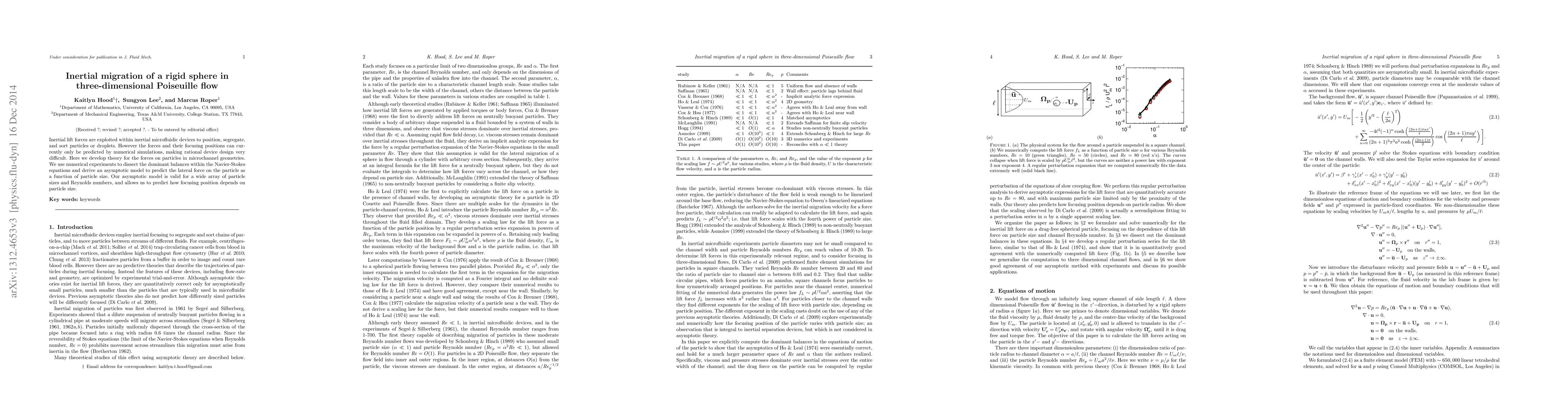 This paper develops a theoretical framework to predict inertial lift forces on rigid spheres in microchannel flows, using an asymptotic model validated by numerical simulations. The model provides insights into how particle size influences focusing positions, aiding in the design of inertial microfluidic devices.