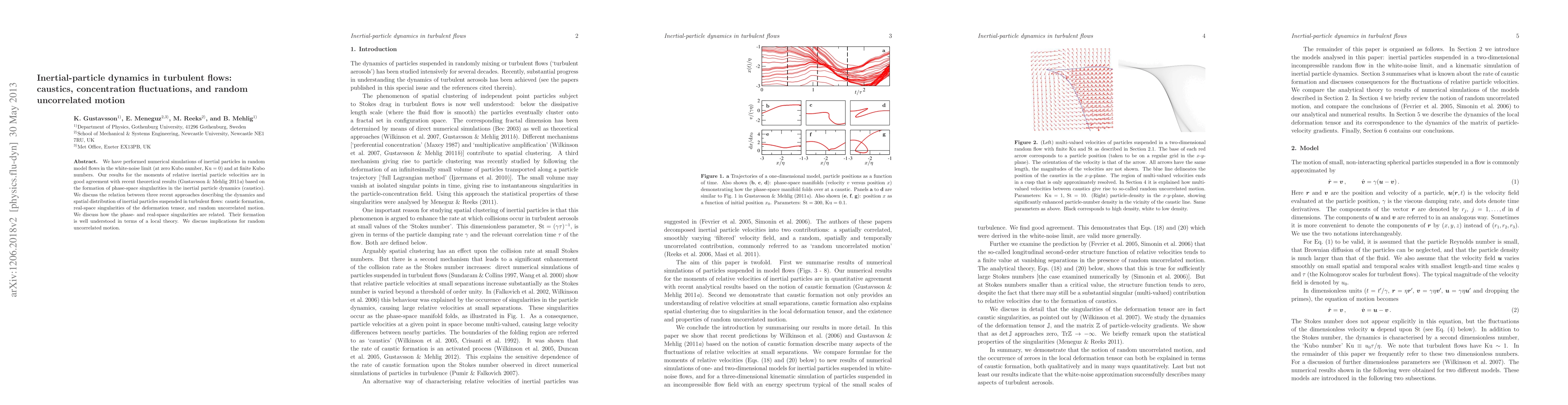 This paper explores the dynamics of inertial particles in turbulent flows, linking phase-space singularities (caustics), real-space singularities, and random uncorrelated motion. The study supports these connections through direct numerical simulations, providing insights into particle concentration fluctuations.