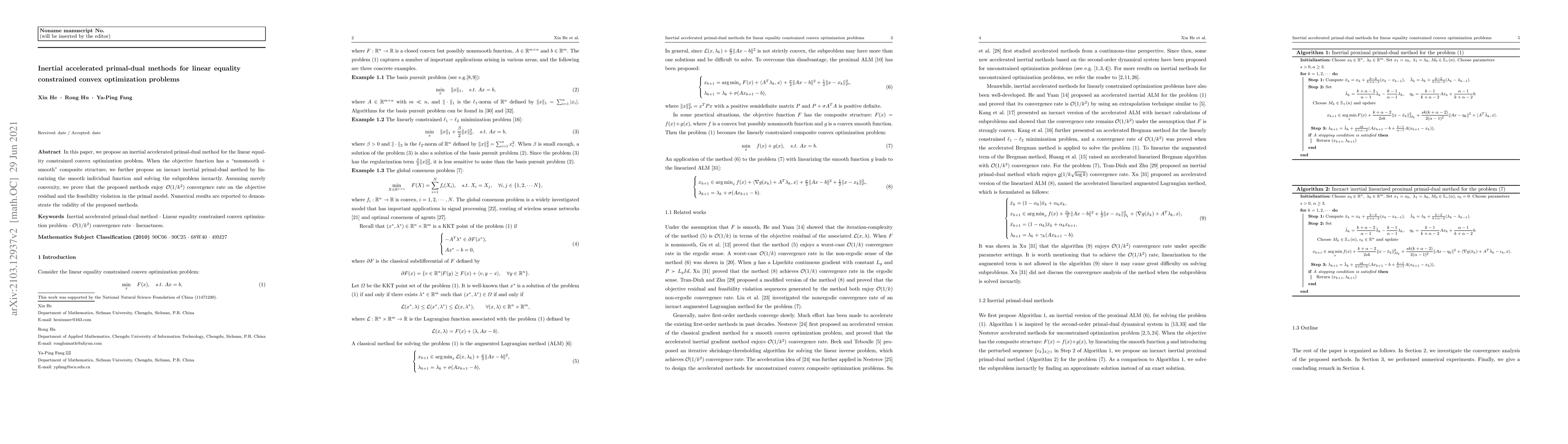This paper proposes inertial accelerated primal-dual methods for solving linear equality constrained convex optimization problems, achieving $\mathcal{O}(1/k^2)$ convergence. An inexact variant is also introduced for composite objective functions, and numerical results validate the effectiveness of the proposed methods.