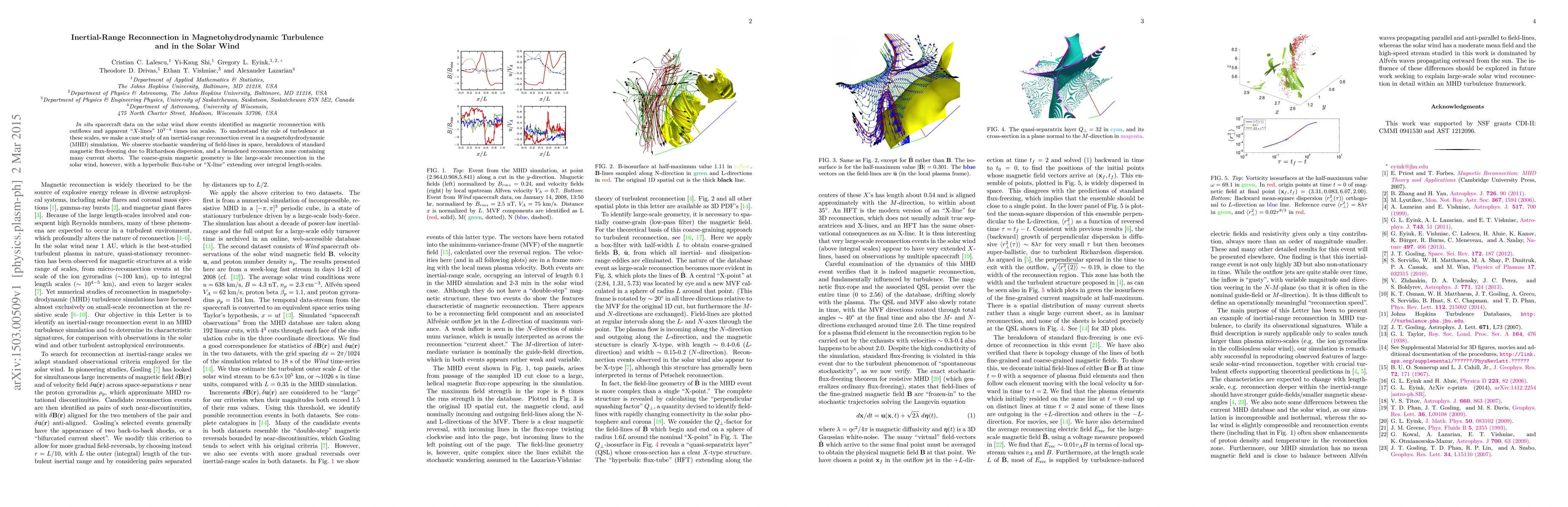 This paper investigates inertial-range reconnection in magnetohydrodynamic turbulence, comparing simulated events to solar wind data. The study reveals stochastic field-line wandering, breakdown of magnetic flux-freezing, and a broadened reconnection zone with multiple current sheets, resembling large-scale solar wind reconnection.