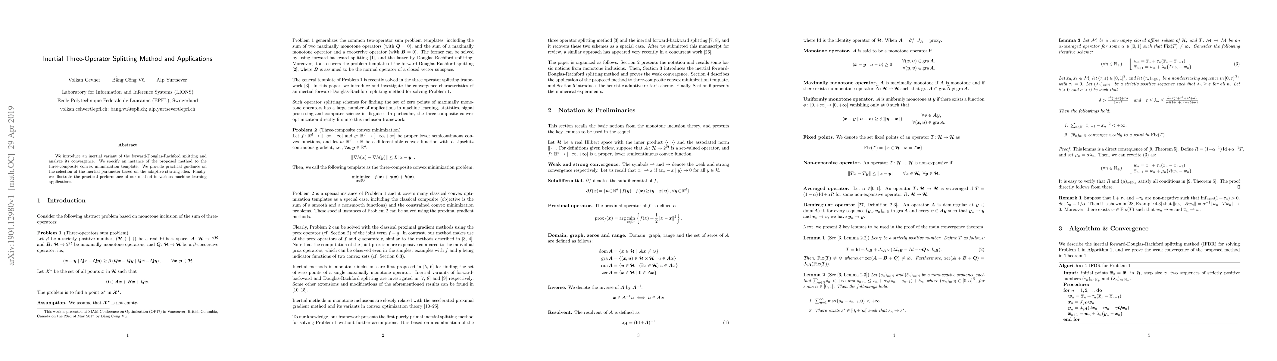 This paper presents an inertial variant of the forward-Douglas-Rachford splitting method, analyzes its convergence, and applies it to three-composite convex minimization. It offers adaptive strategies for selecting the inertial parameter and demonstrates its effectiveness in various machine learning applications.