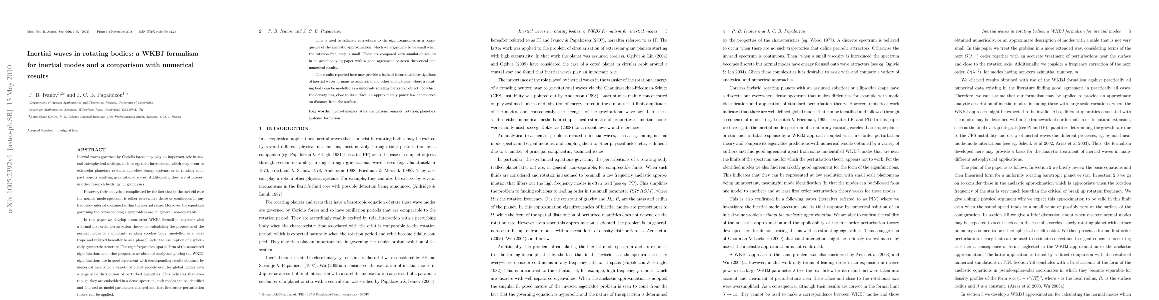 This paper develops a WKBJ formalism and first-order perturbation theory to analytically calculate inertial modes in a rotating, spherically symmetric body, showing good agreement with numerical results. The study estimates small corrections to eigenfrequencies due to the anelastic approximation and suggests these methods can be applied to various astrophysical contexts.
