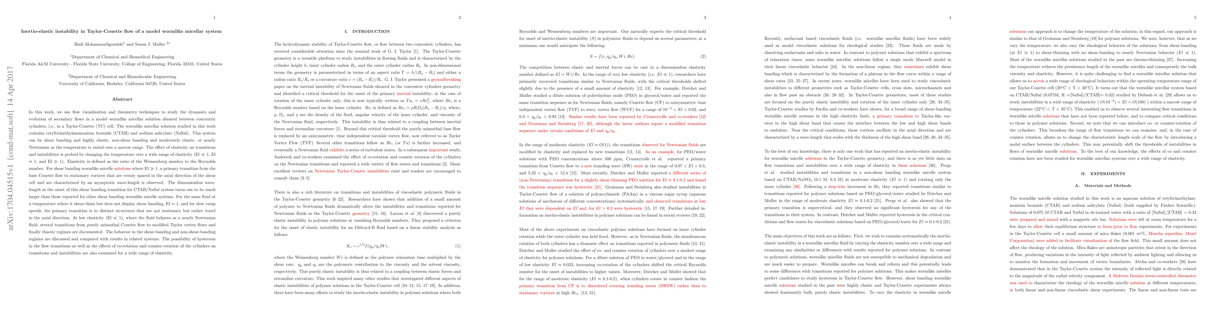 This study investigates the dynamics and instabilities in a model wormlike micellar solution (CTAB and NaSal) in a Taylor-Couette flow, exploring how elasticity influences transitions and instabilities. It finds that high elasticity leads to shear banding and large wavelength vortices, while low elasticity results in transitions to chaotic regimes.