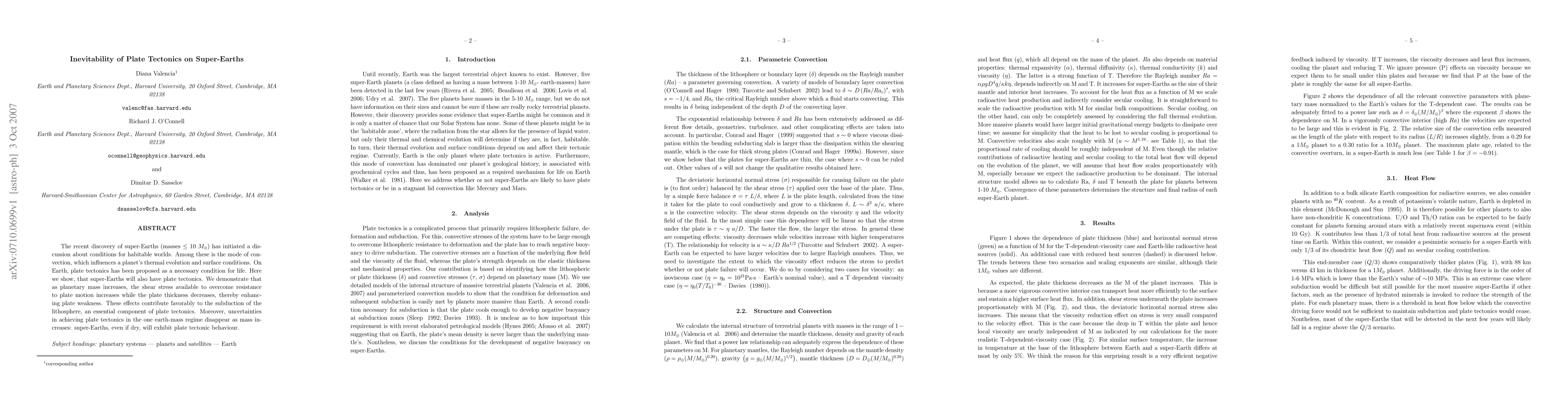 This paper argues that super-Earths, with masses up to 10 times that of Earth, are likely to develop plate tectonics due to increased shear stress and reduced plate thickness, which facilitate lithosphere subduction. It concludes that mass increase eliminates uncertainties about plate tectonics seen in Earth-mass planets.
