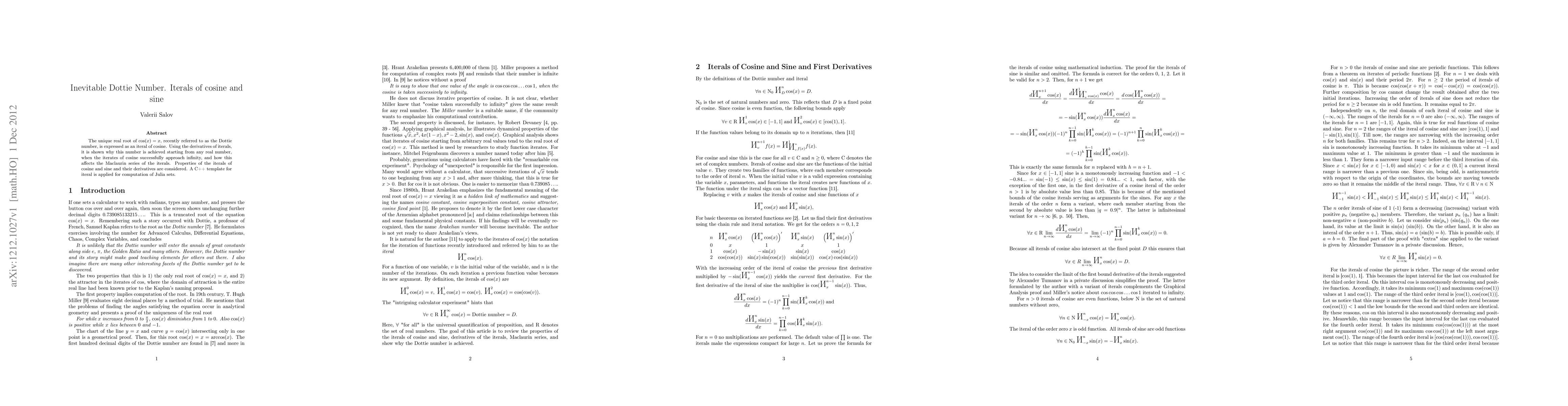 The Dottie number, the unique real root of cos(x) = x, is expressed as an iteral of cosine and shown to converge from any real number. The study explores the properties of cosine and sine iterals and their derivatives, and applies a C++ template for iteral computation in generating Julia sets.